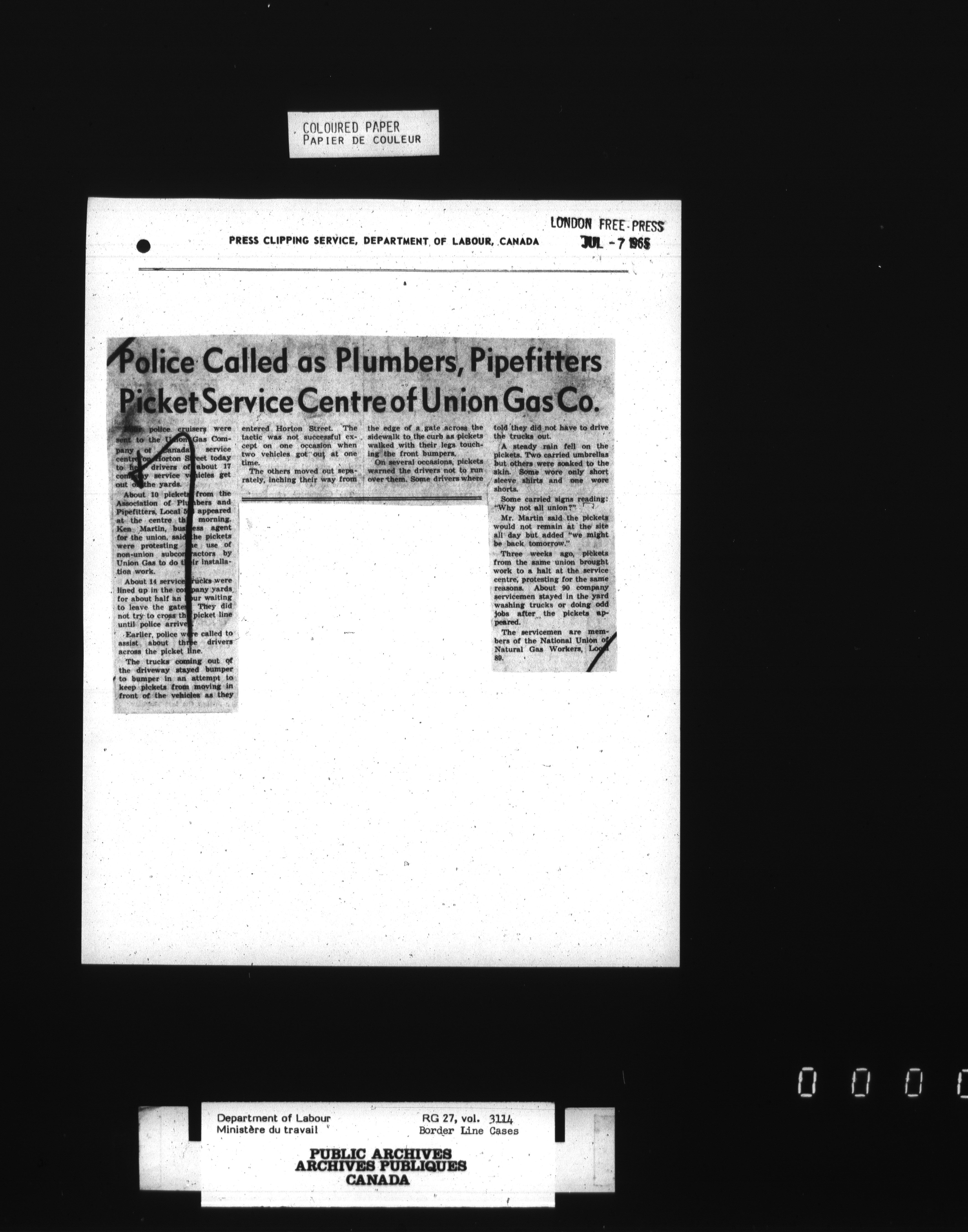 Department of Labour, Economics and Research Branch : Strikes and lockout files - 3418