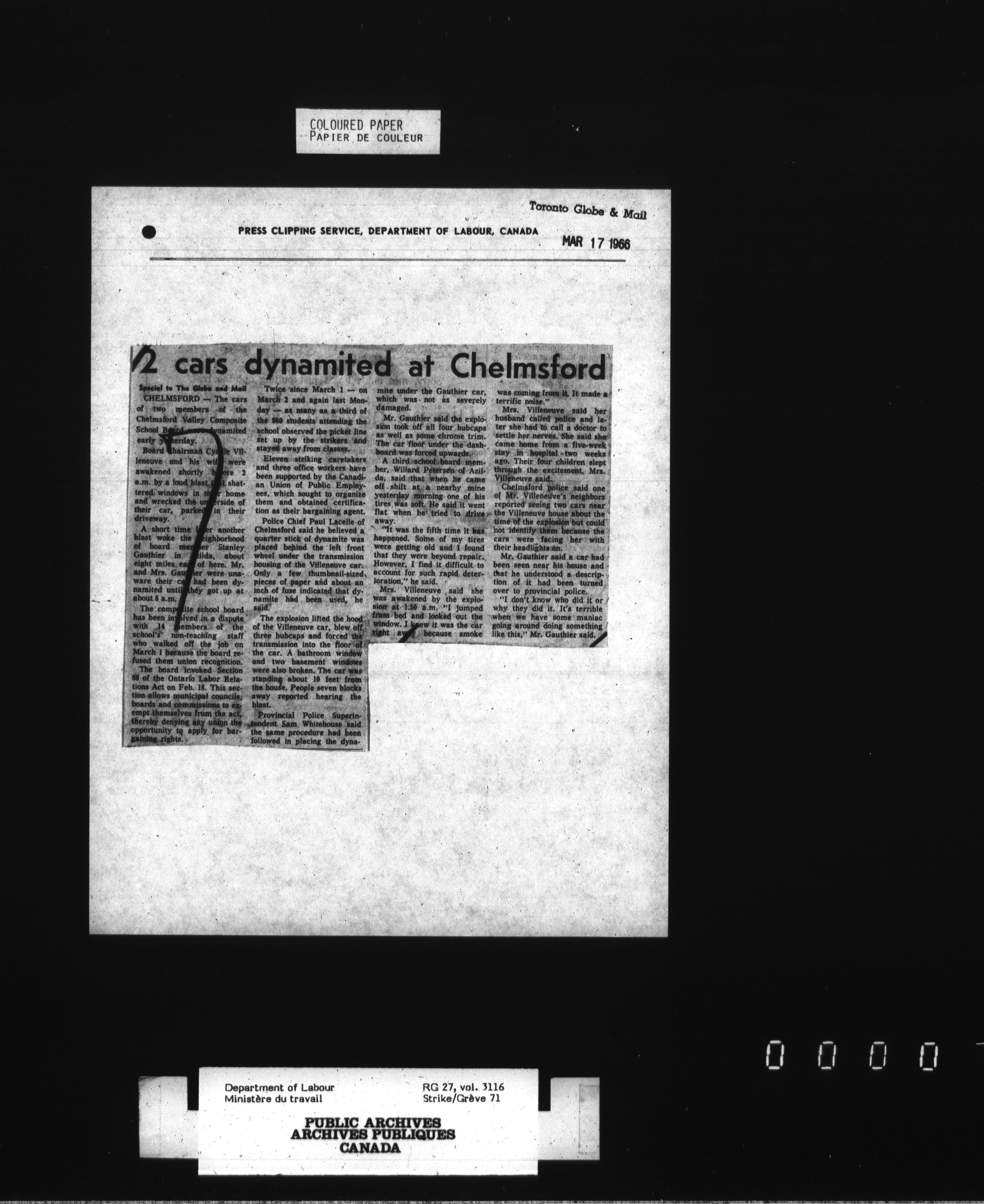 Department of Labour, Economics and Research Branch : Strikes and lockout files - 3419