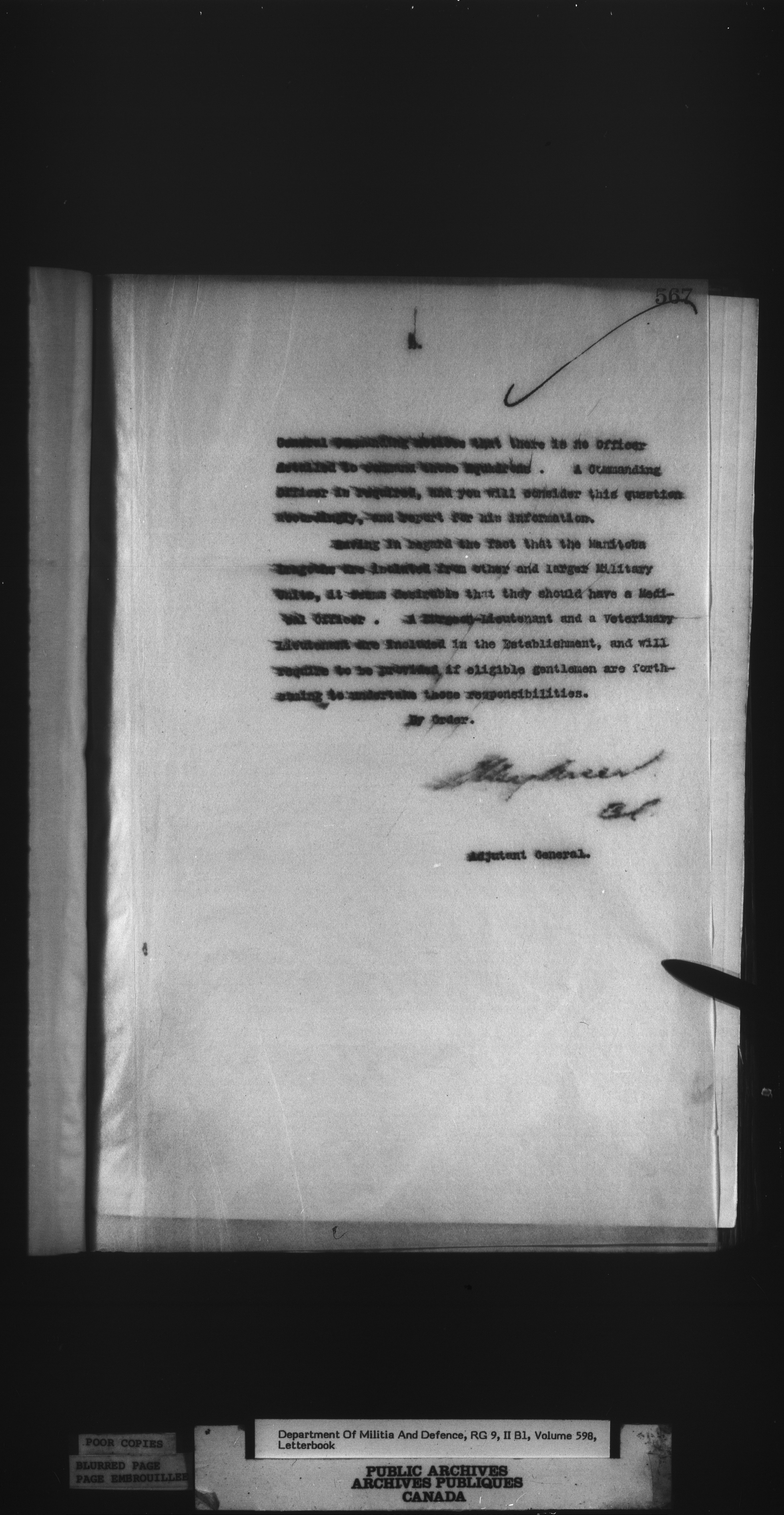 Correspondence of the General Officer Commanding (GOC) of the Canadian Militia and his predecessor, the Adjutant General - 342