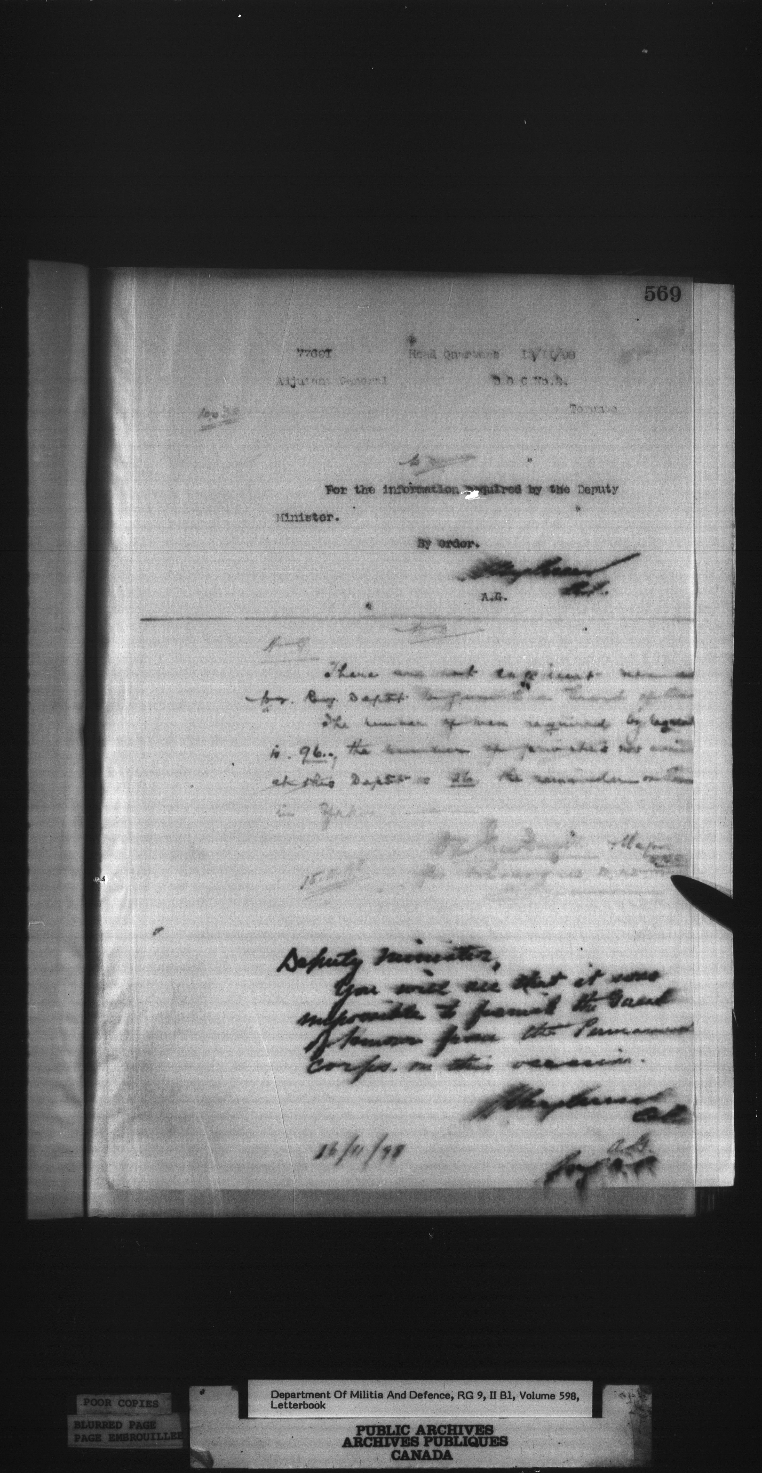 Correspondence of the General Officer Commanding (GOC) of the Canadian Militia and his predecessor, the Adjutant General - 342
