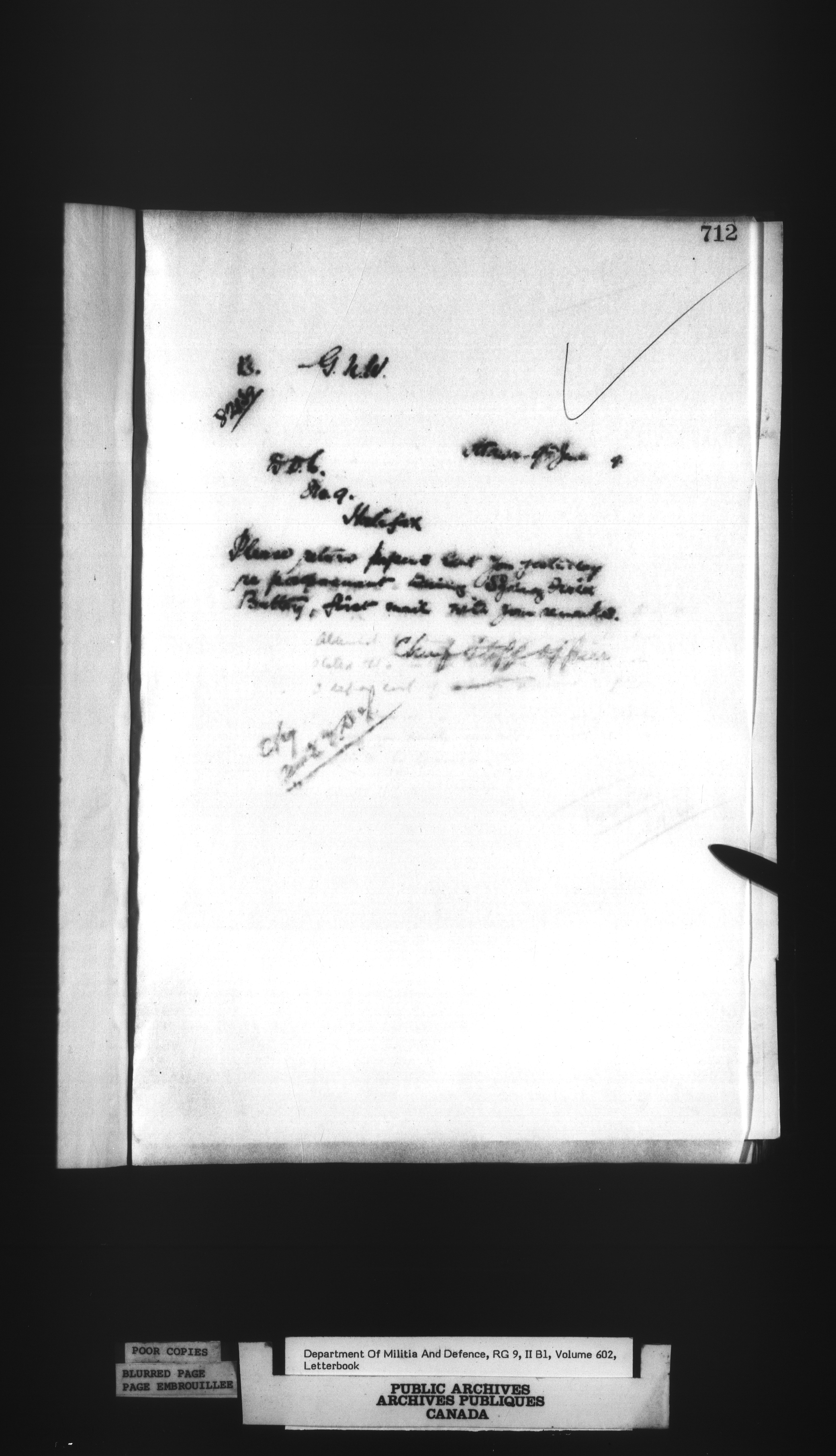 Correspondence of the General Officer Commanding (GOC) of the Canadian Militia and his predecessor, the Adjutant General - 344