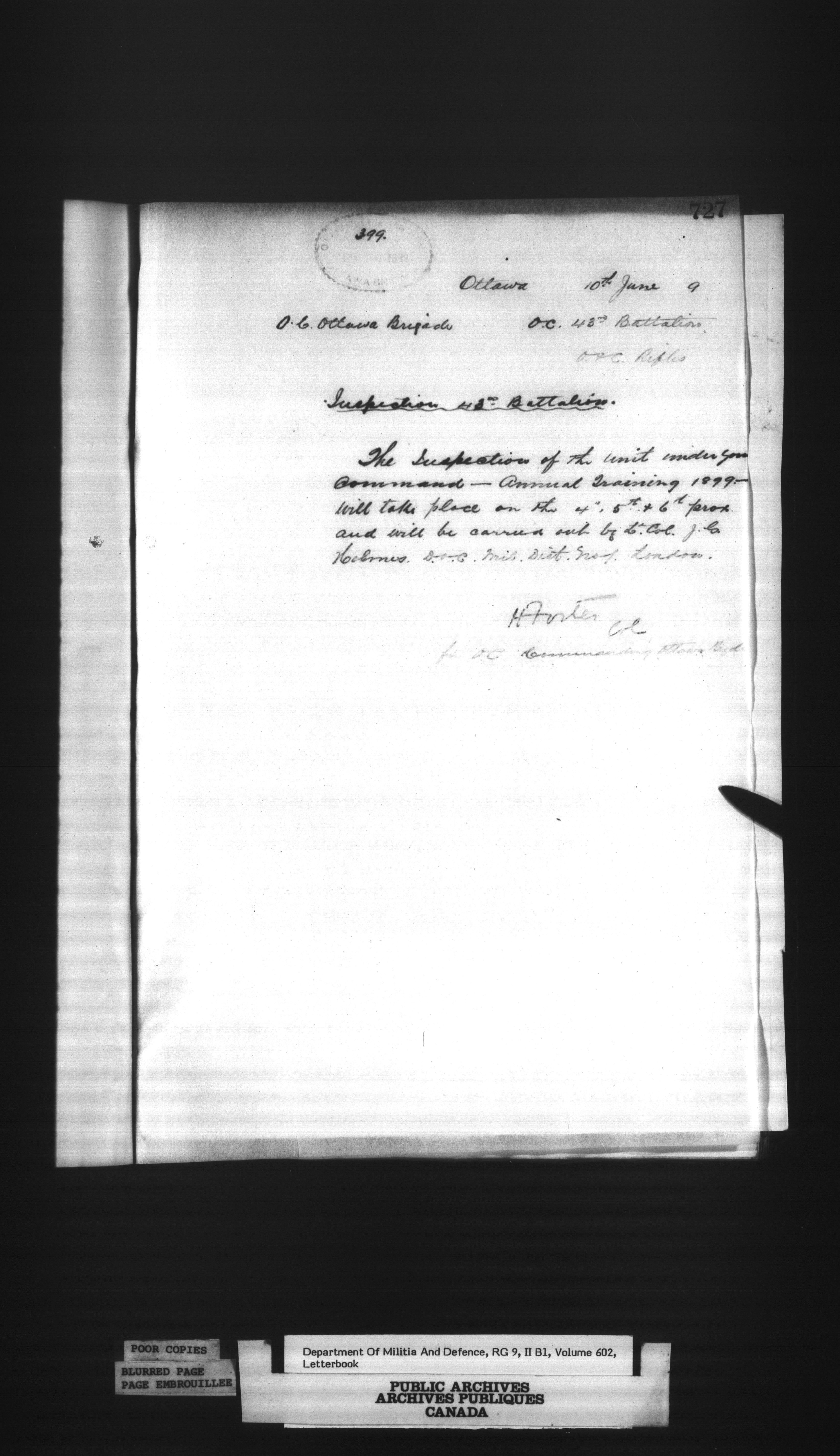 Correspondence of the General Officer Commanding (GOC) of the Canadian Militia and his predecessor, the Adjutant General - 344