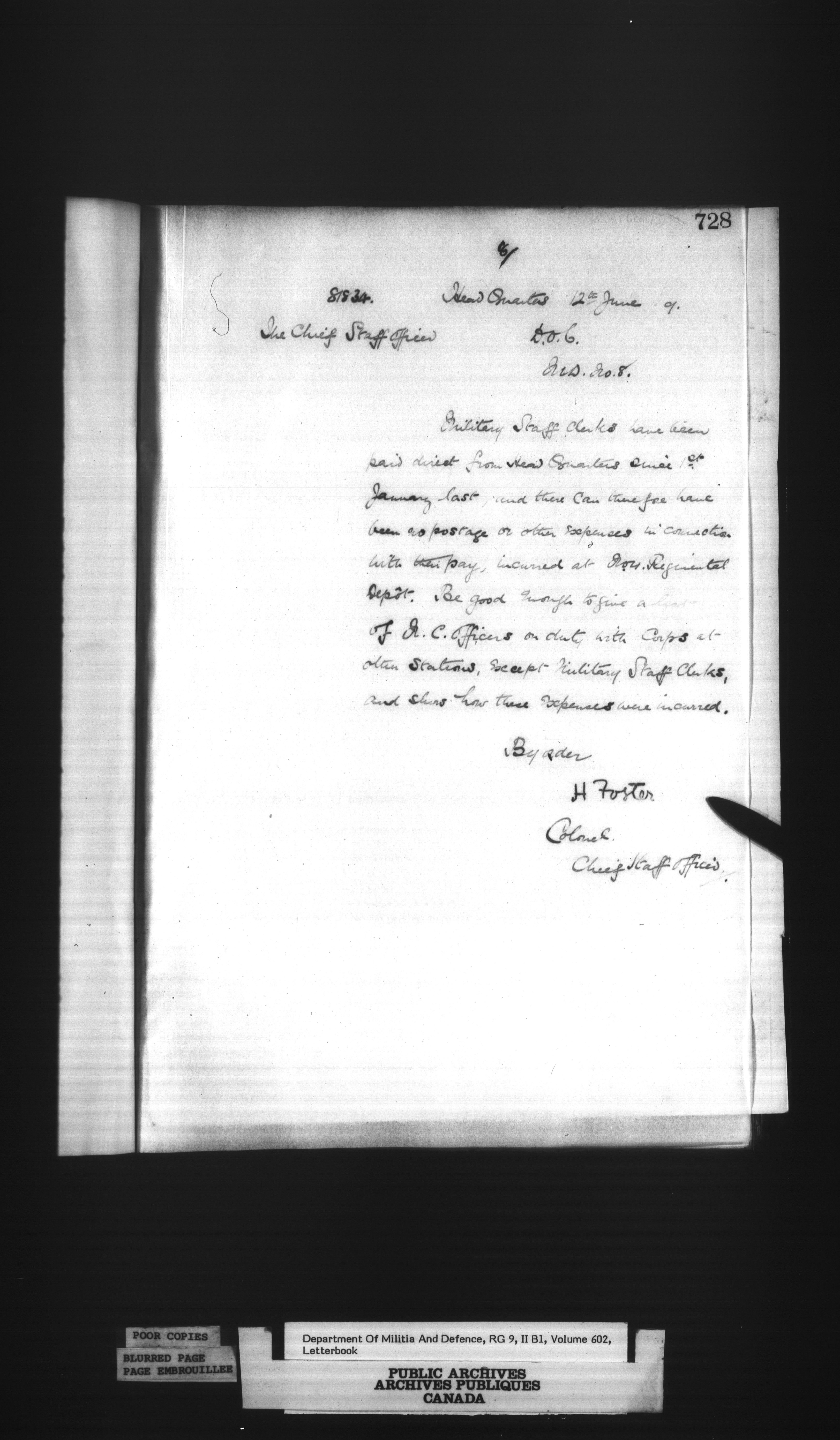 Correspondence of the General Officer Commanding (GOC) of the Canadian Militia and his predecessor, the Adjutant General - 344