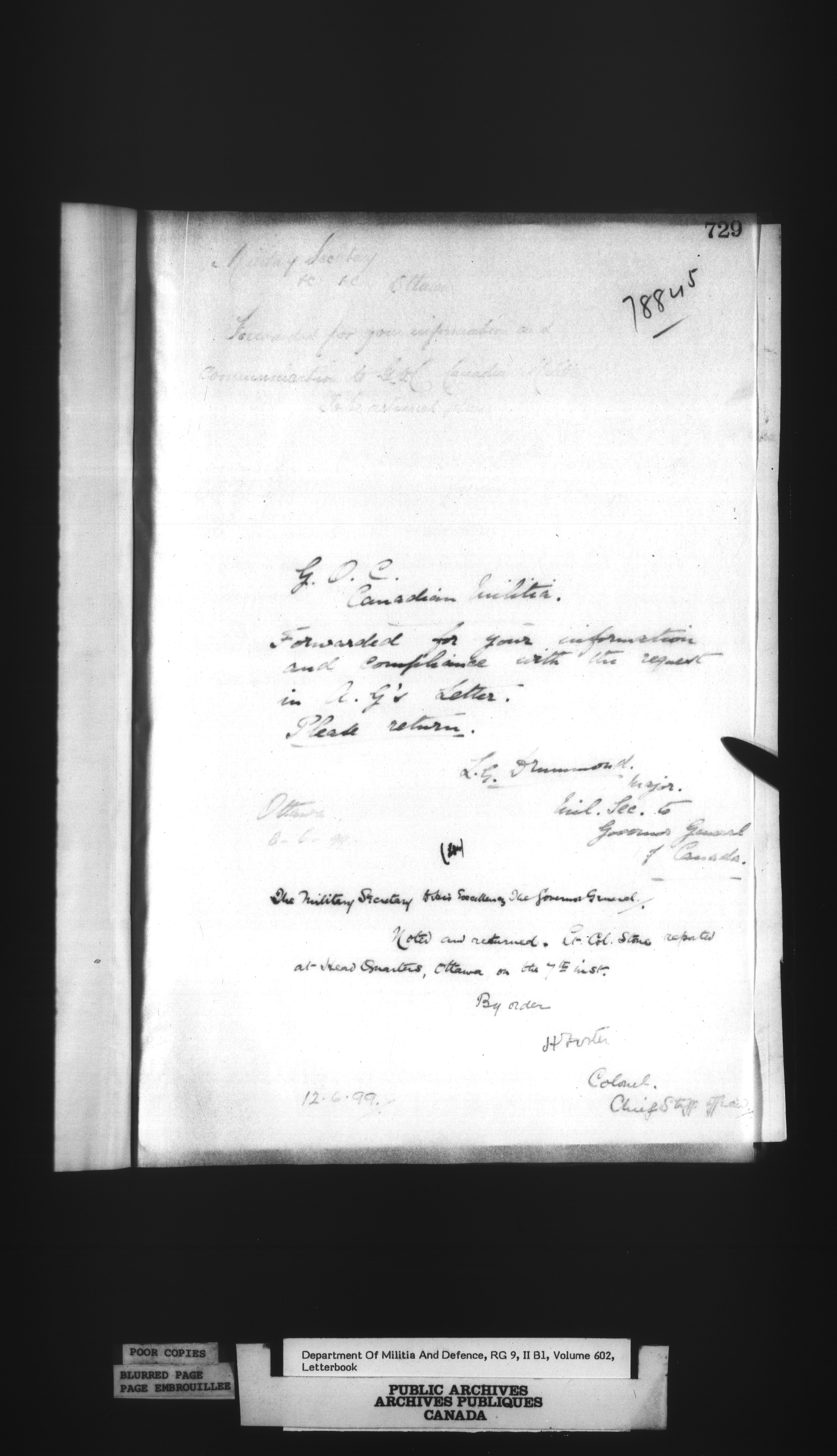 Correspondence of the General Officer Commanding (GOC) of the Canadian Militia and his predecessor, the Adjutant General - 344