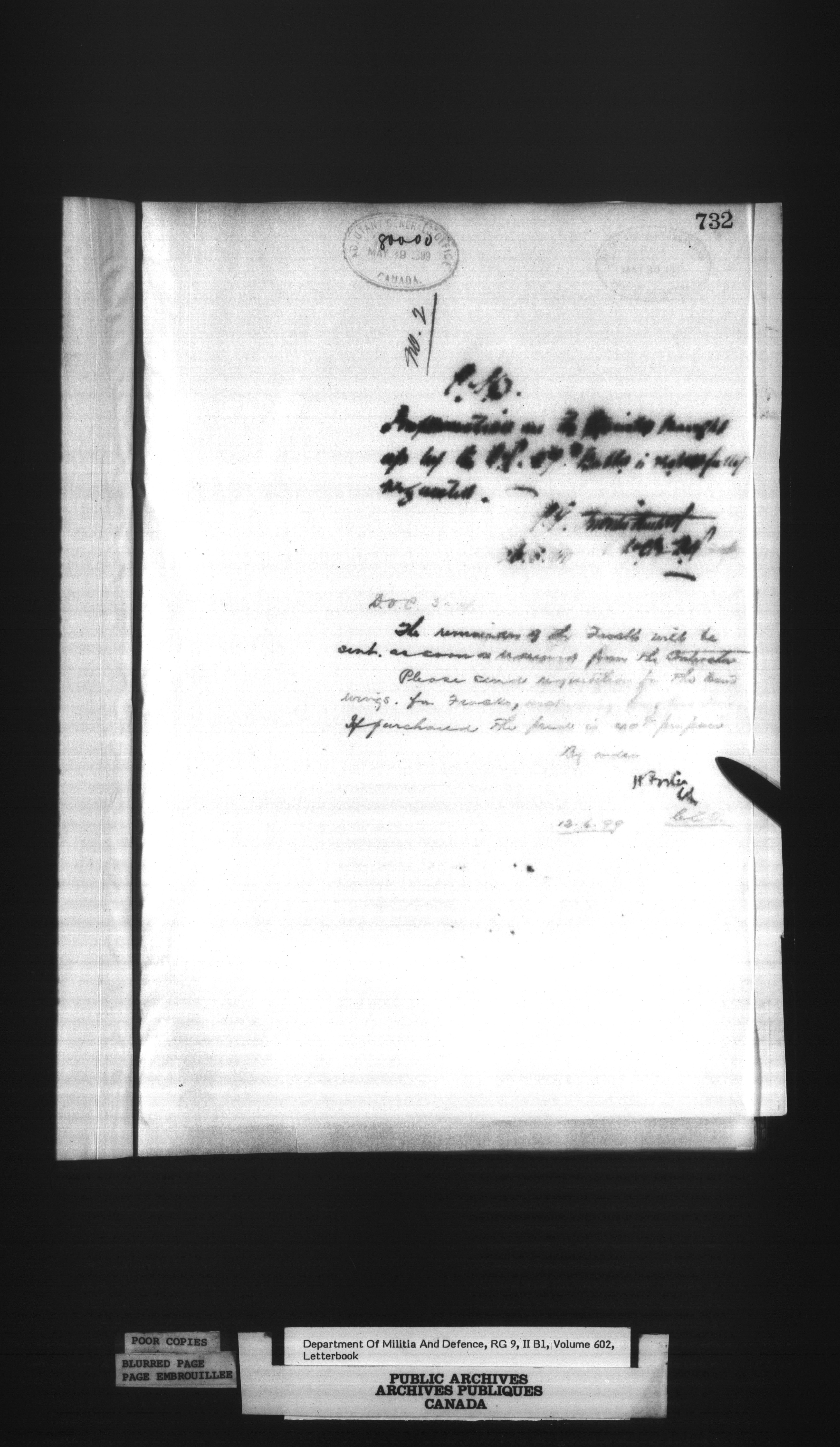 Correspondence of the General Officer Commanding (GOC) of the Canadian Militia and his predecessor, the Adjutant General - 344