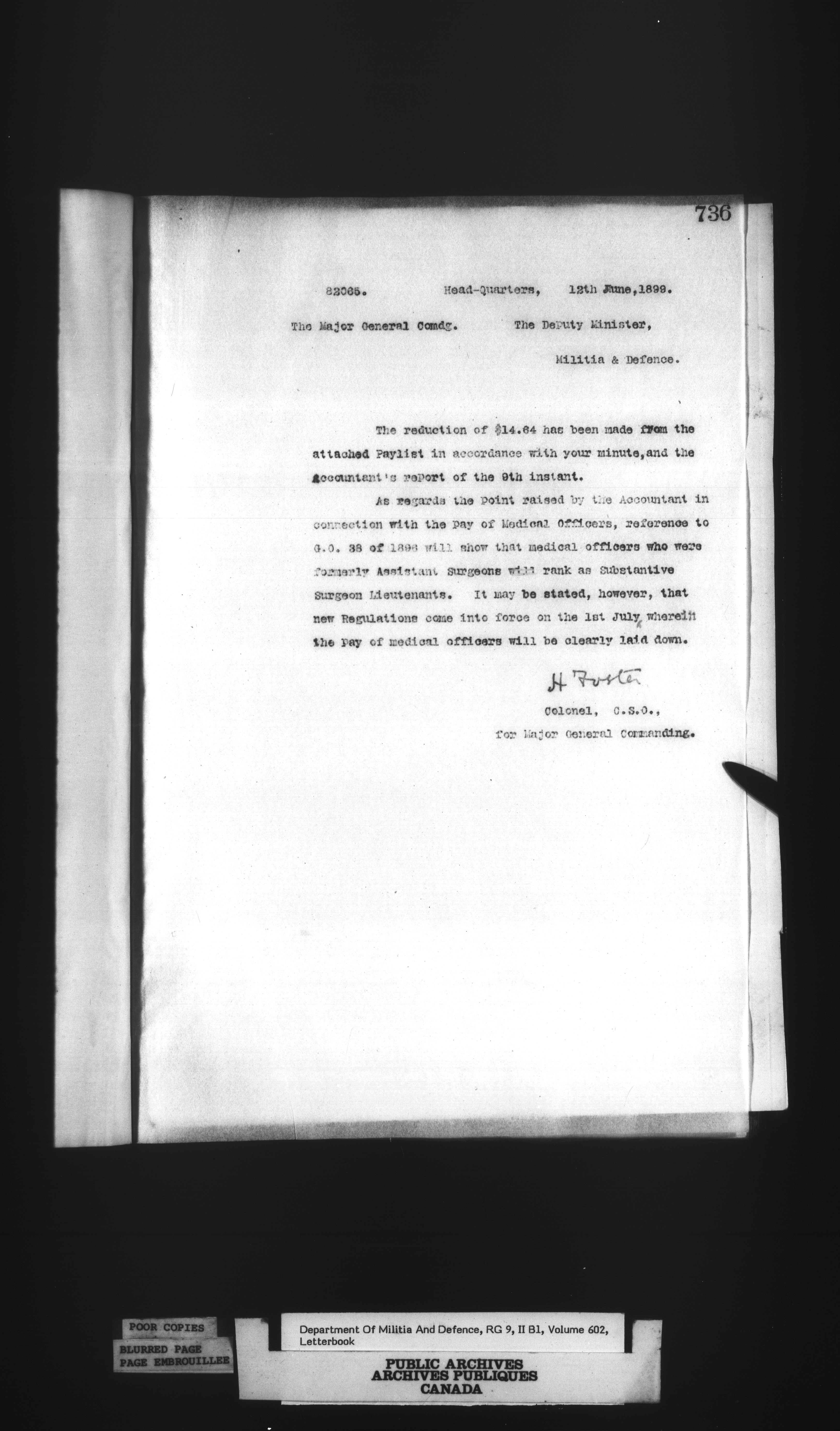 Correspondence of the General Officer Commanding (GOC) of the Canadian Militia and his predecessor, the Adjutant General - 344