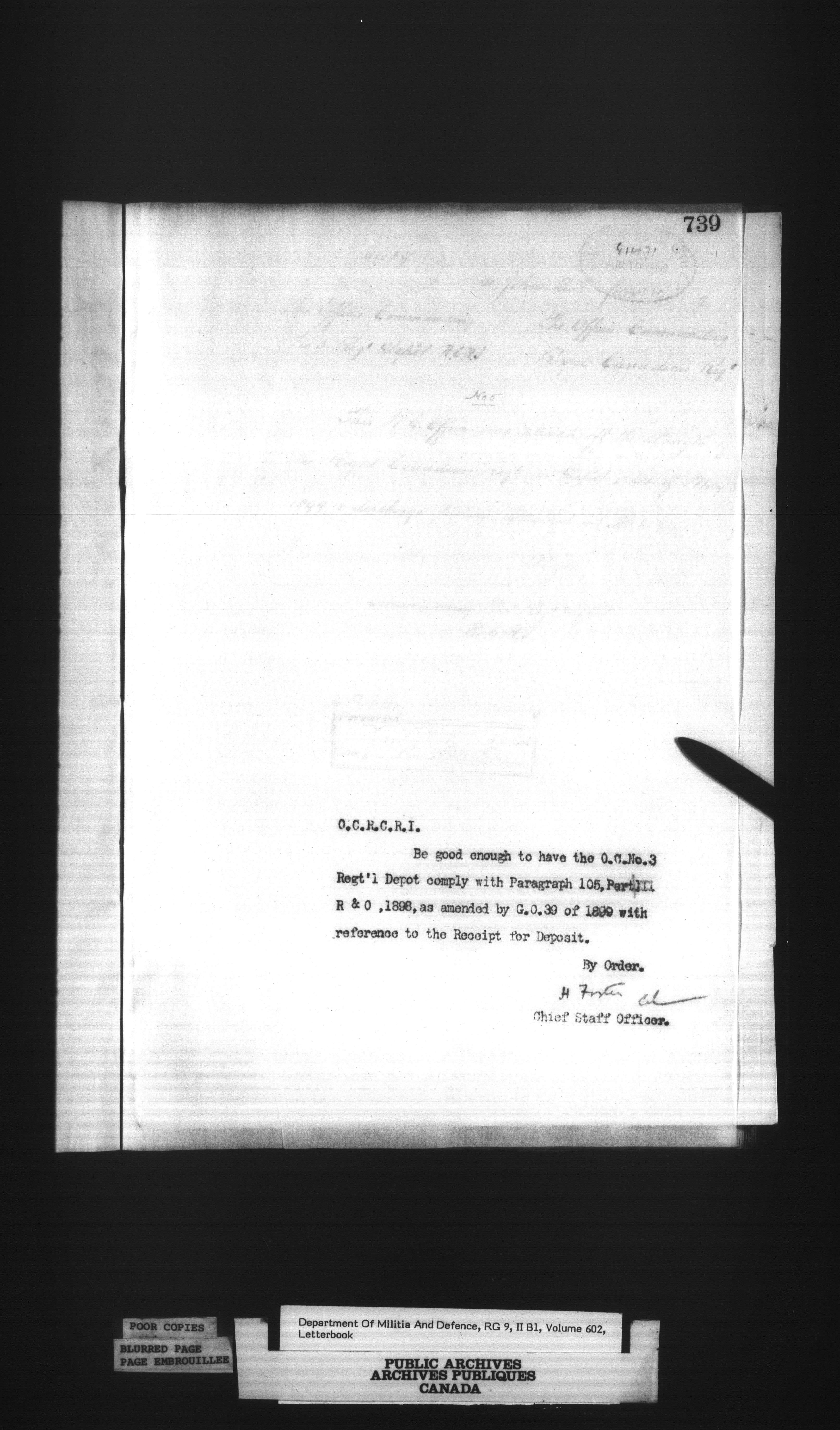 Correspondence of the General Officer Commanding (GOC) of the Canadian Militia and his predecessor, the Adjutant General - 344