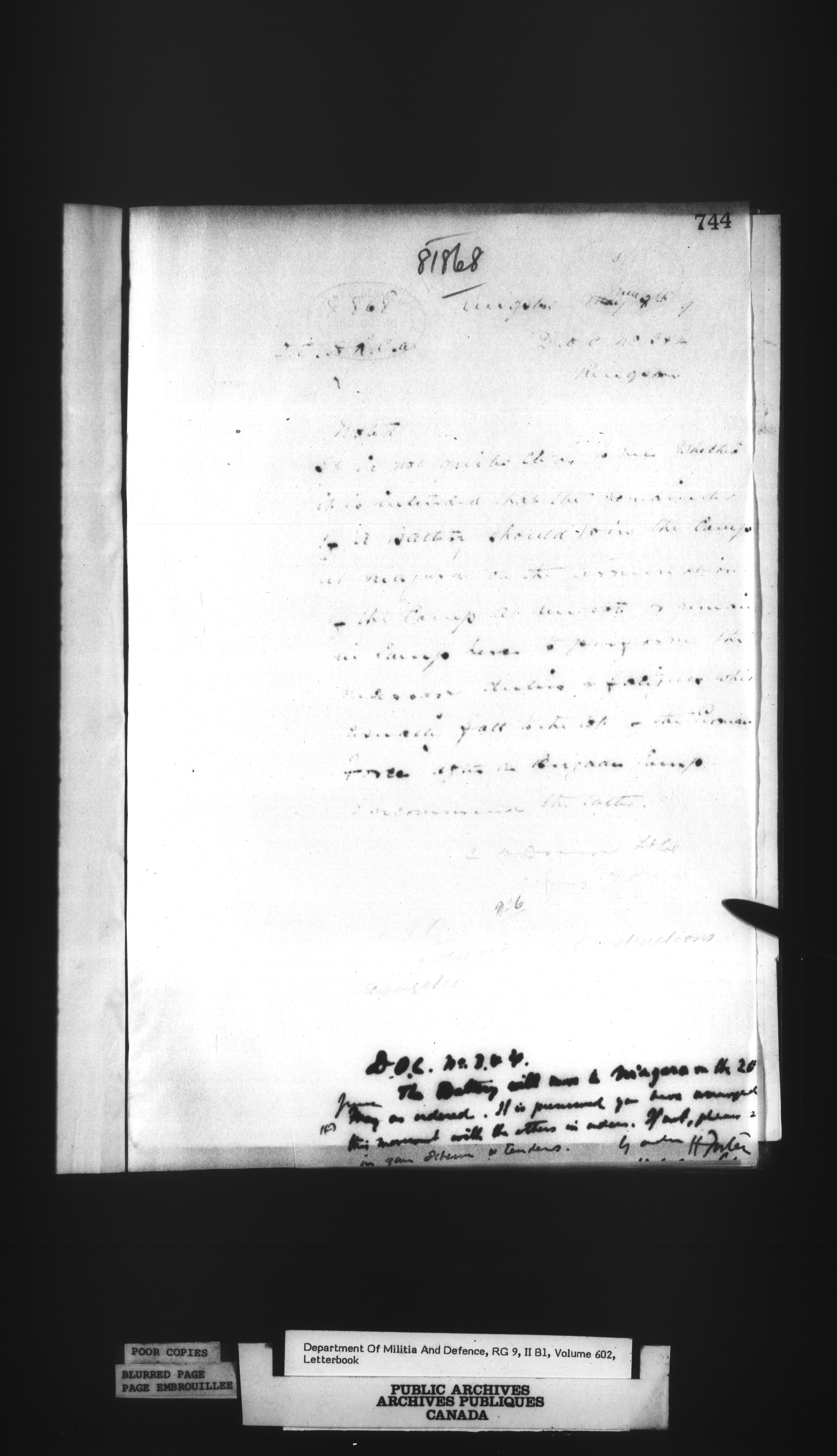 Correspondence of the General Officer Commanding (GOC) of the Canadian Militia and his predecessor, the Adjutant General - 344