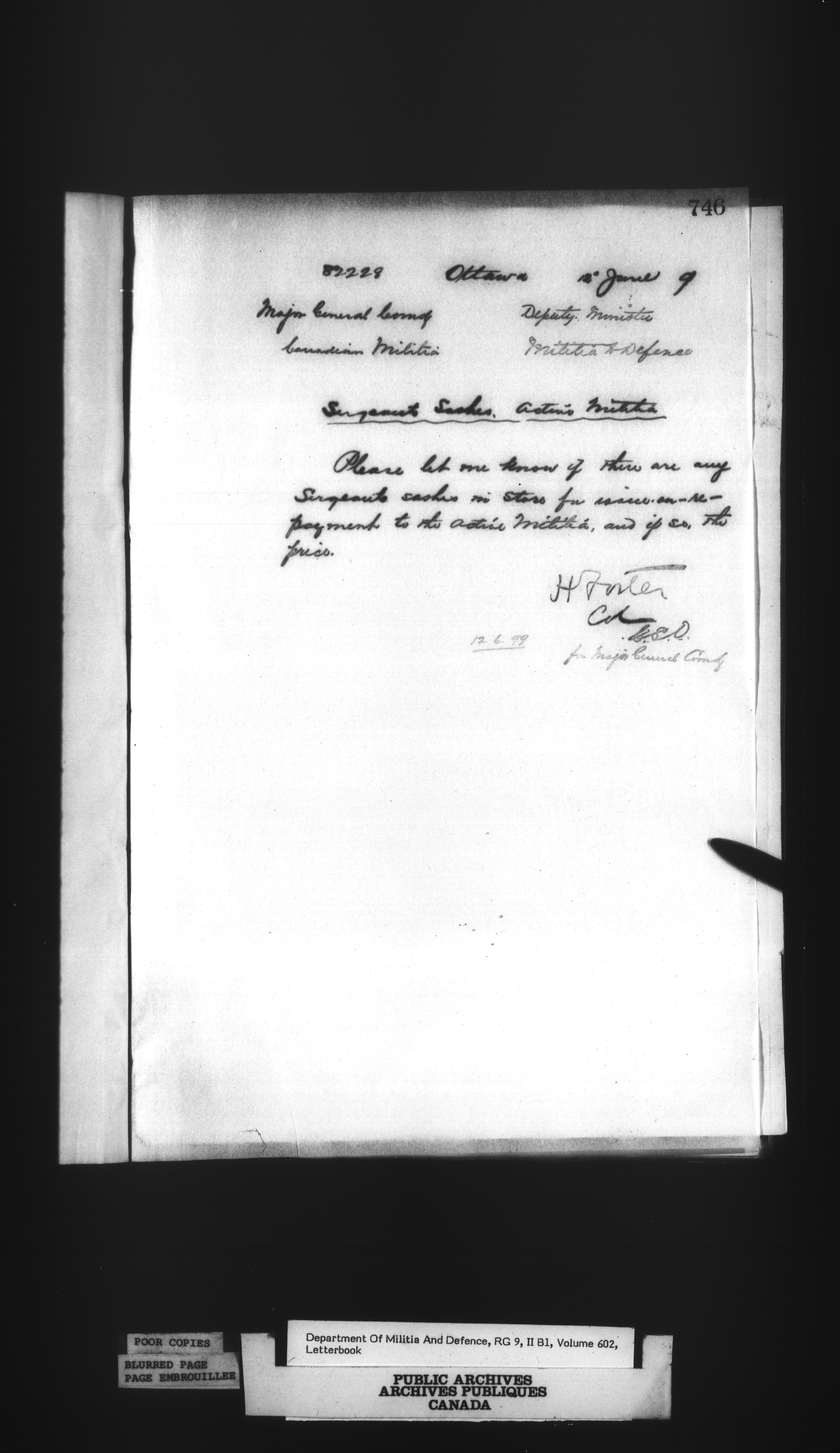 Correspondence of the General Officer Commanding (GOC) of the Canadian Militia and his predecessor, the Adjutant General - 344