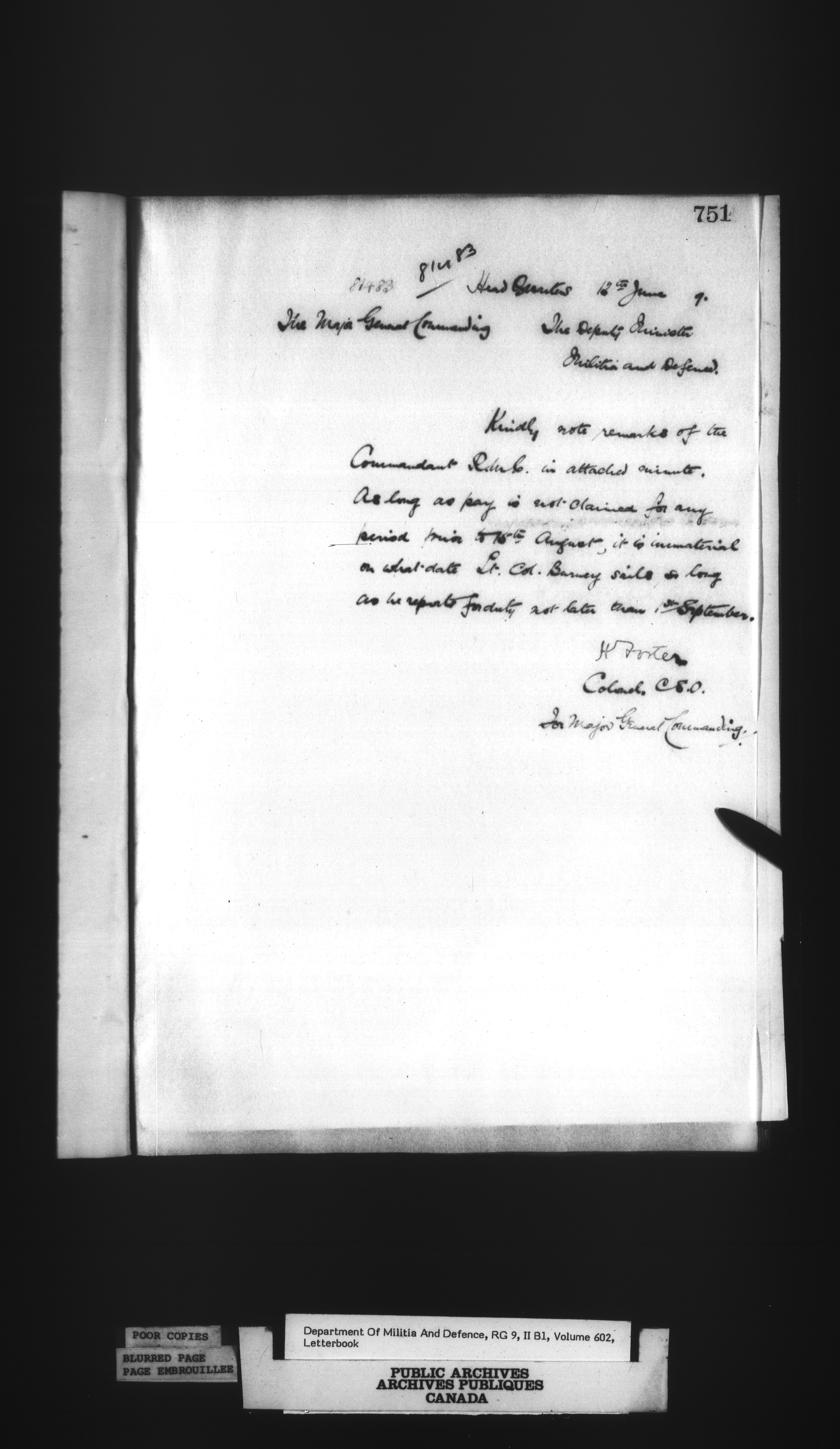 Correspondence of the General Officer Commanding (GOC) of the Canadian Militia and his predecessor, the Adjutant General - 344