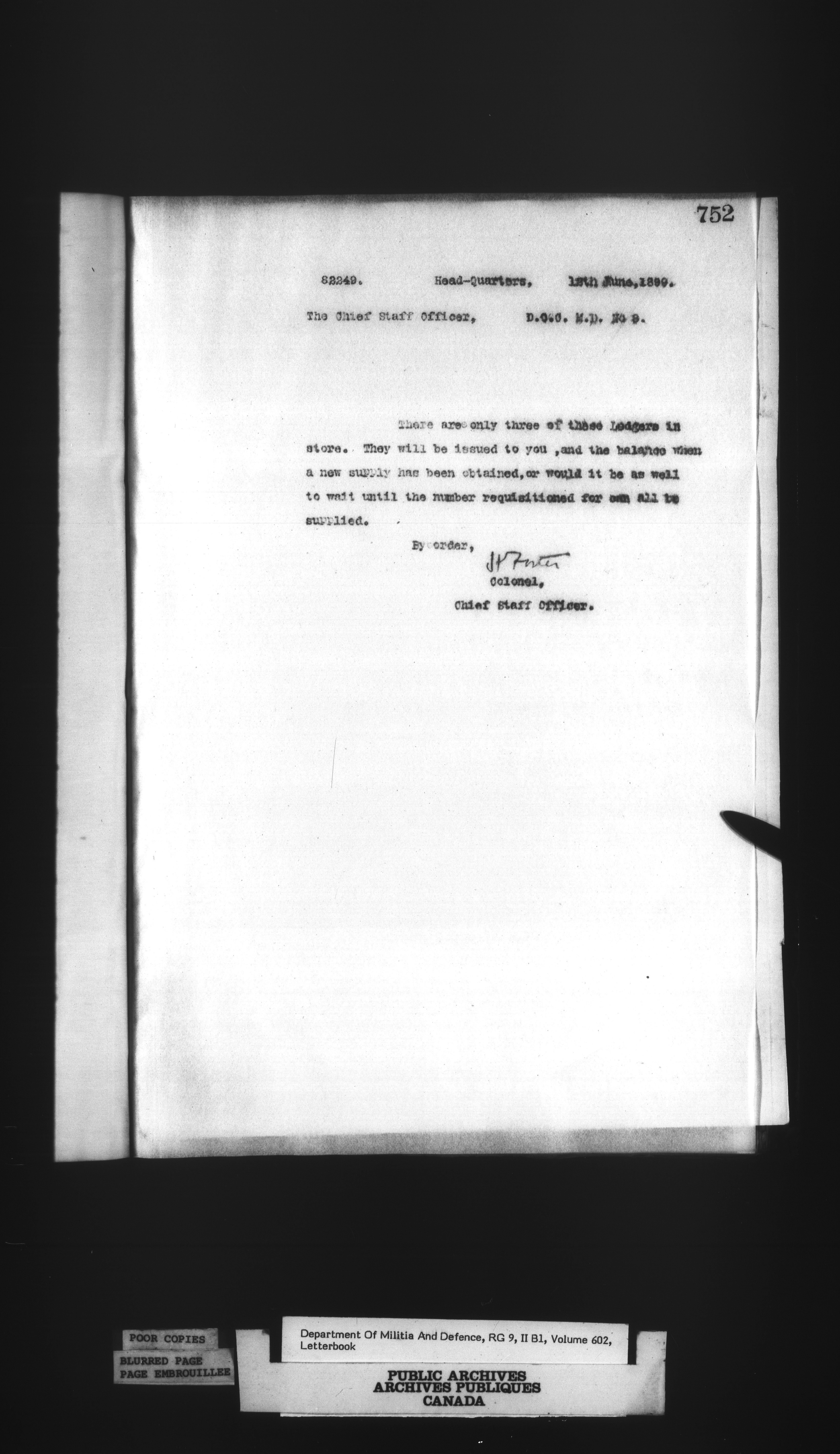 Correspondence of the General Officer Commanding (GOC) of the Canadian Militia and his predecessor, the Adjutant General - 344
