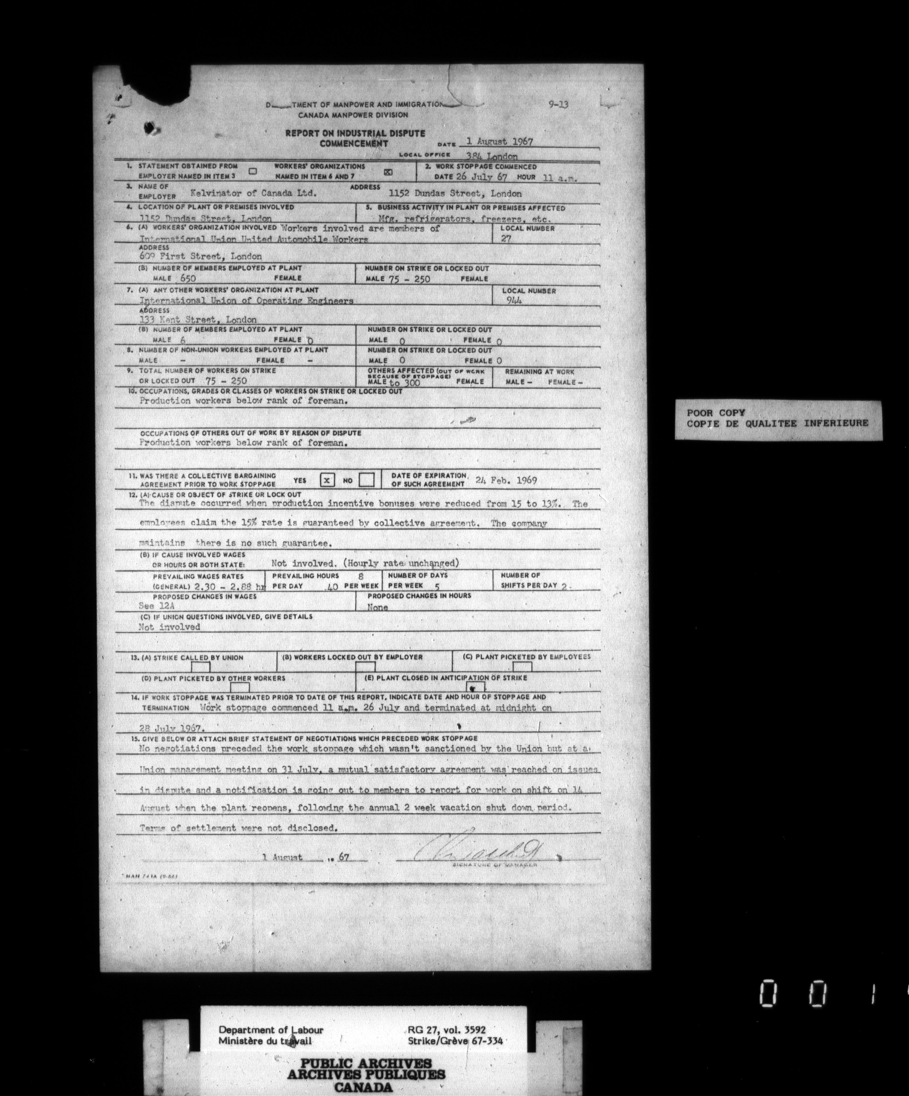 Department of Labour, Economics and Research Branch : Strikes and lockout files - 3440