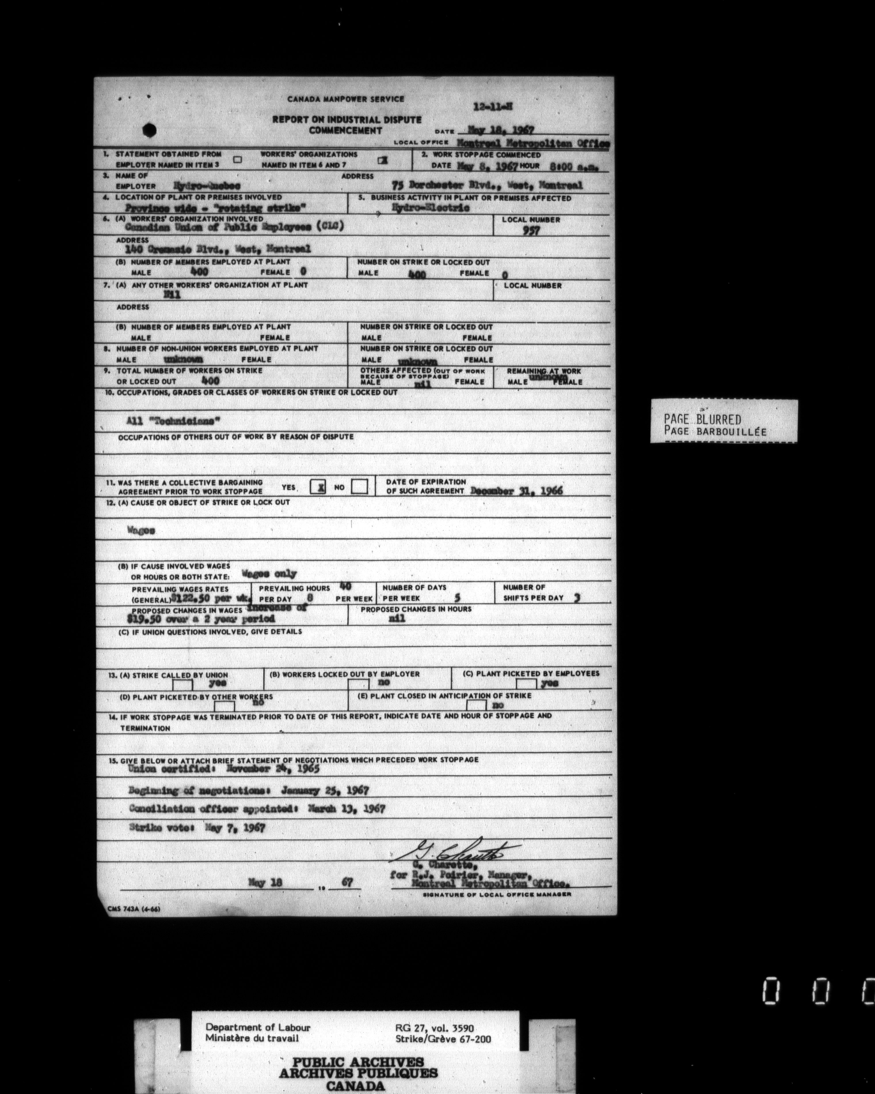 Department of Labour, Economics and Research Branch : Strikes and lockout files - 3440