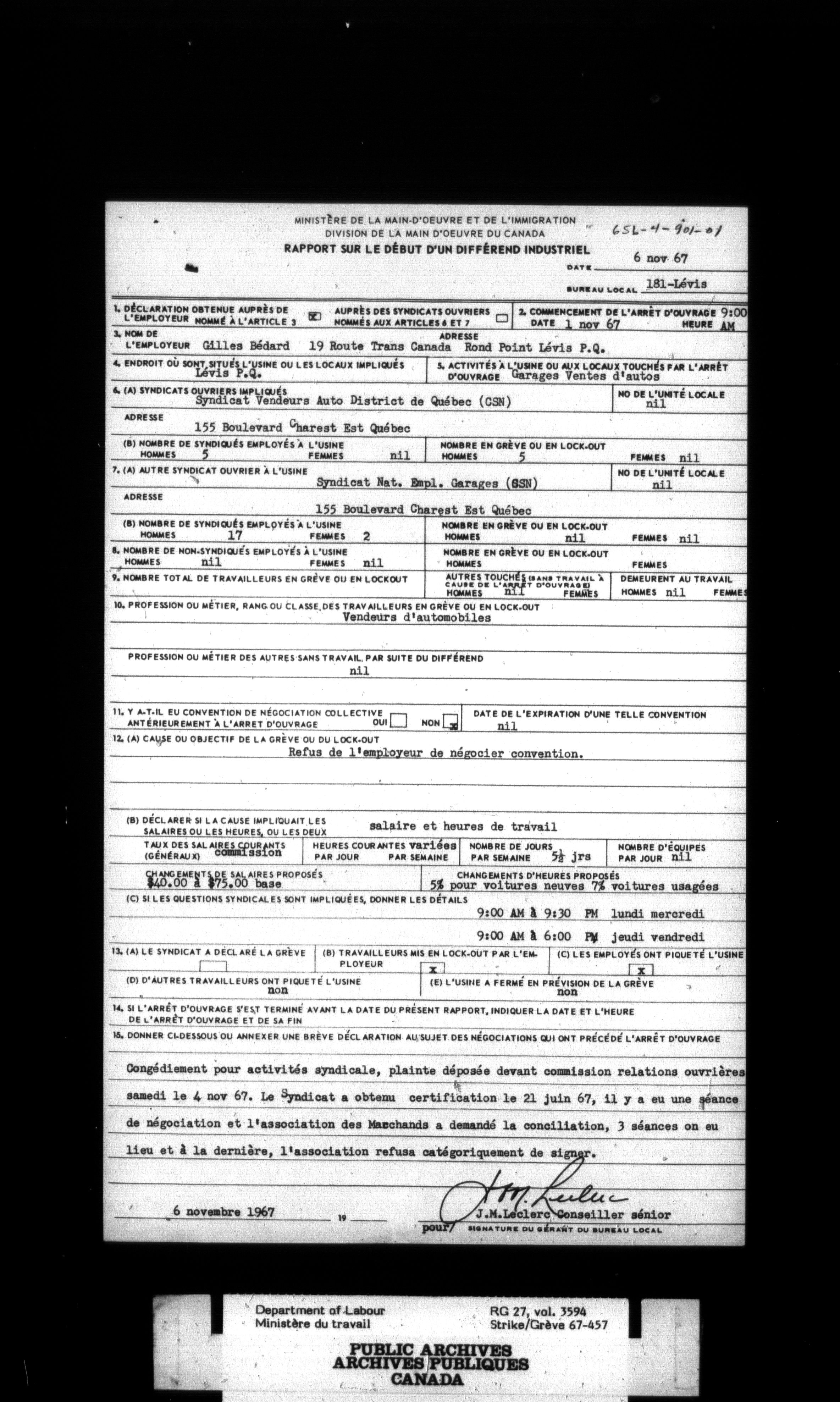 Department of Labour, Economics and Research Branch : Strikes and lockout files - 3441