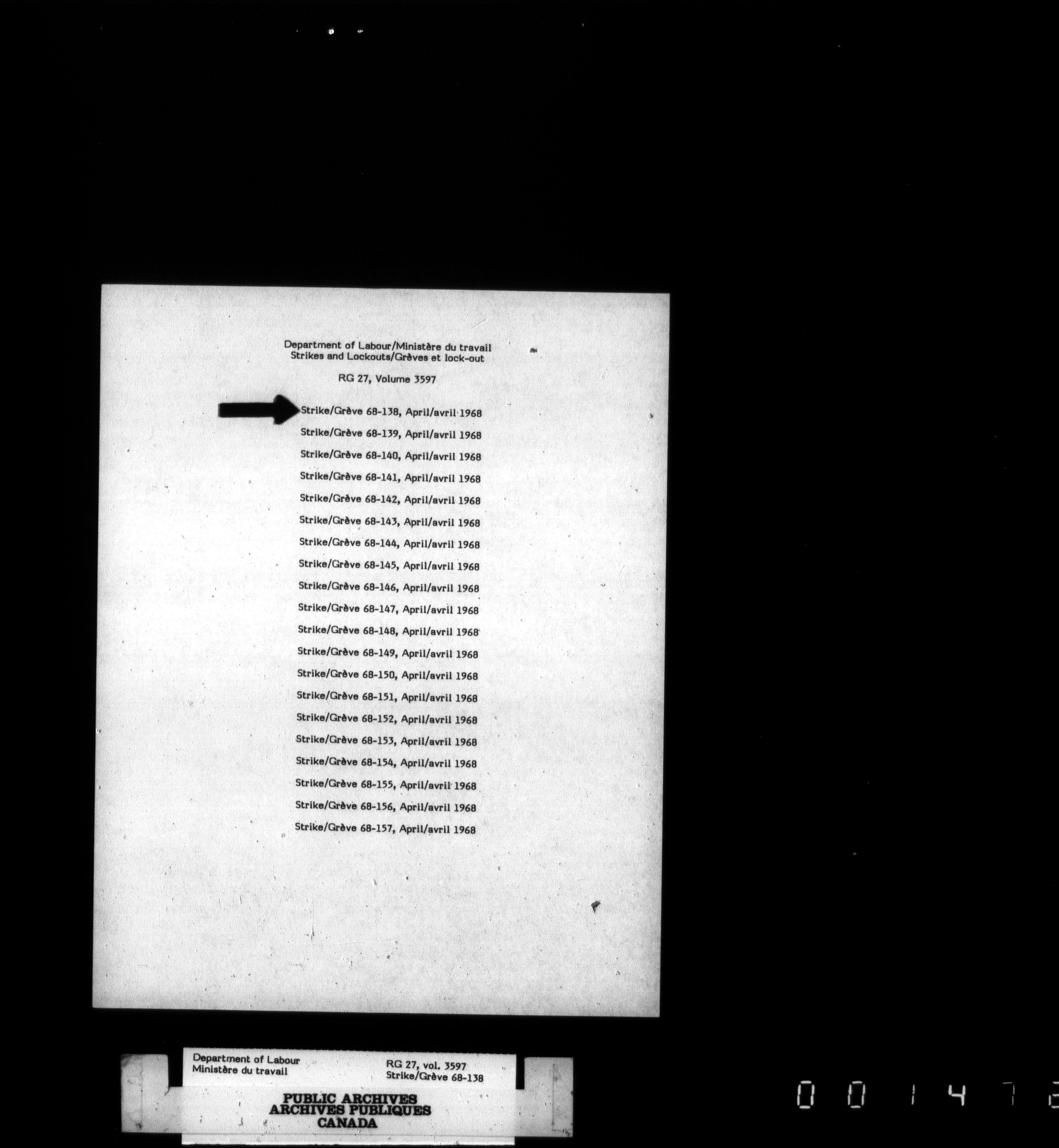 Department of Labour, Economics and Research Branch : Strikes and lockout files - 3442