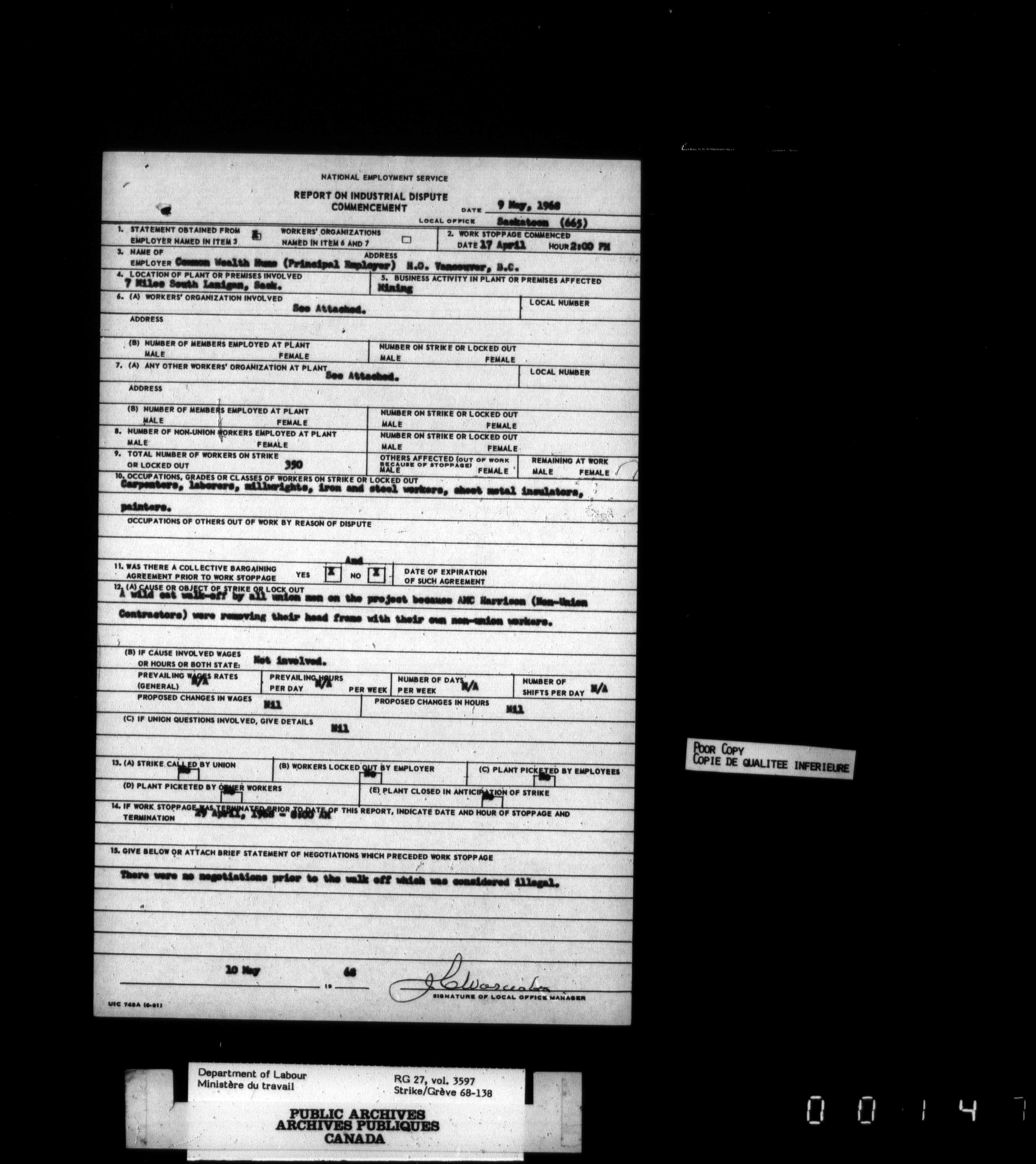 Department of Labour, Economics and Research Branch : Strikes and lockout files - 3442