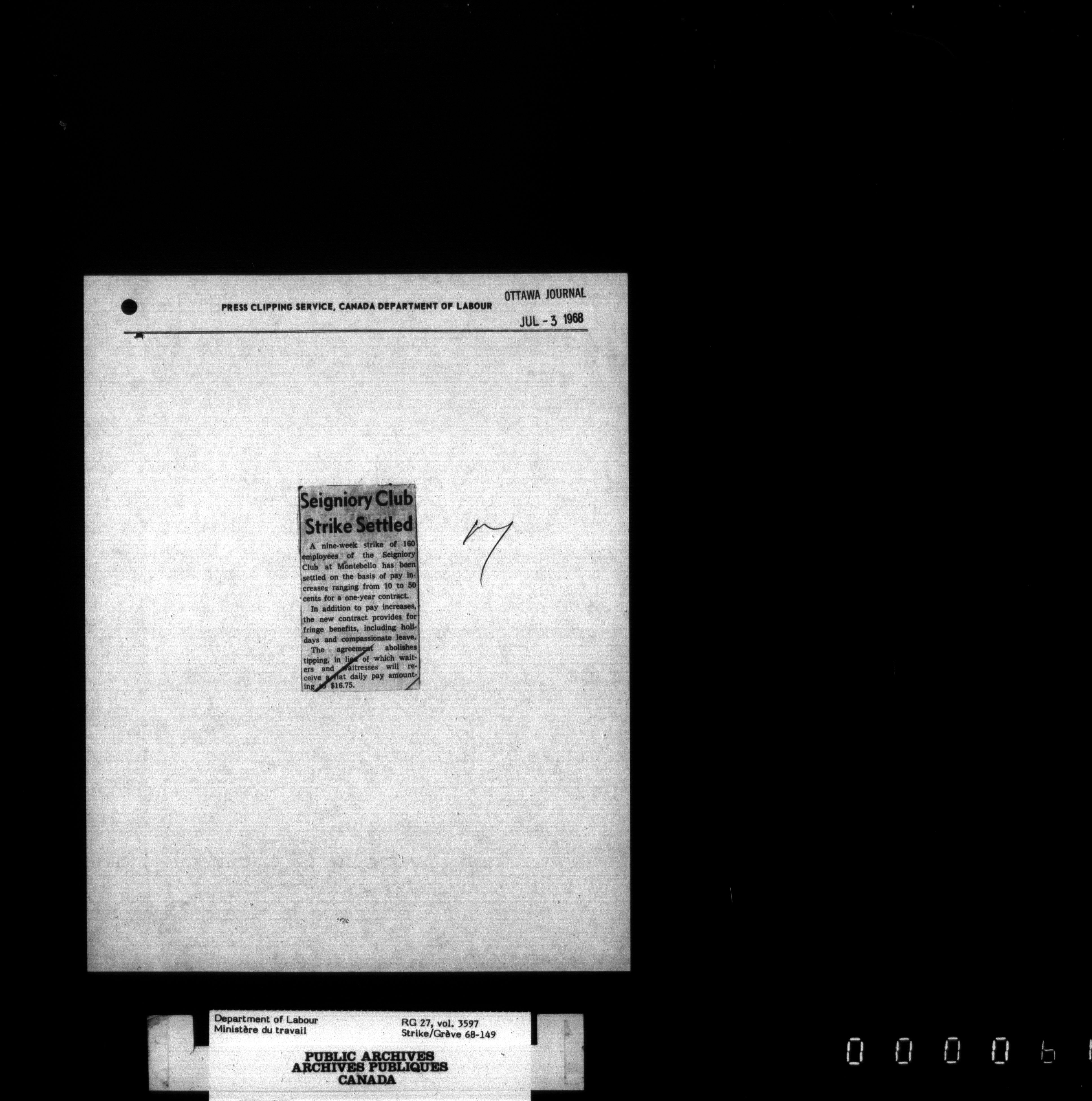 Department of Labour, Economics and Research Branch : Strikes and lockout files : T-3443