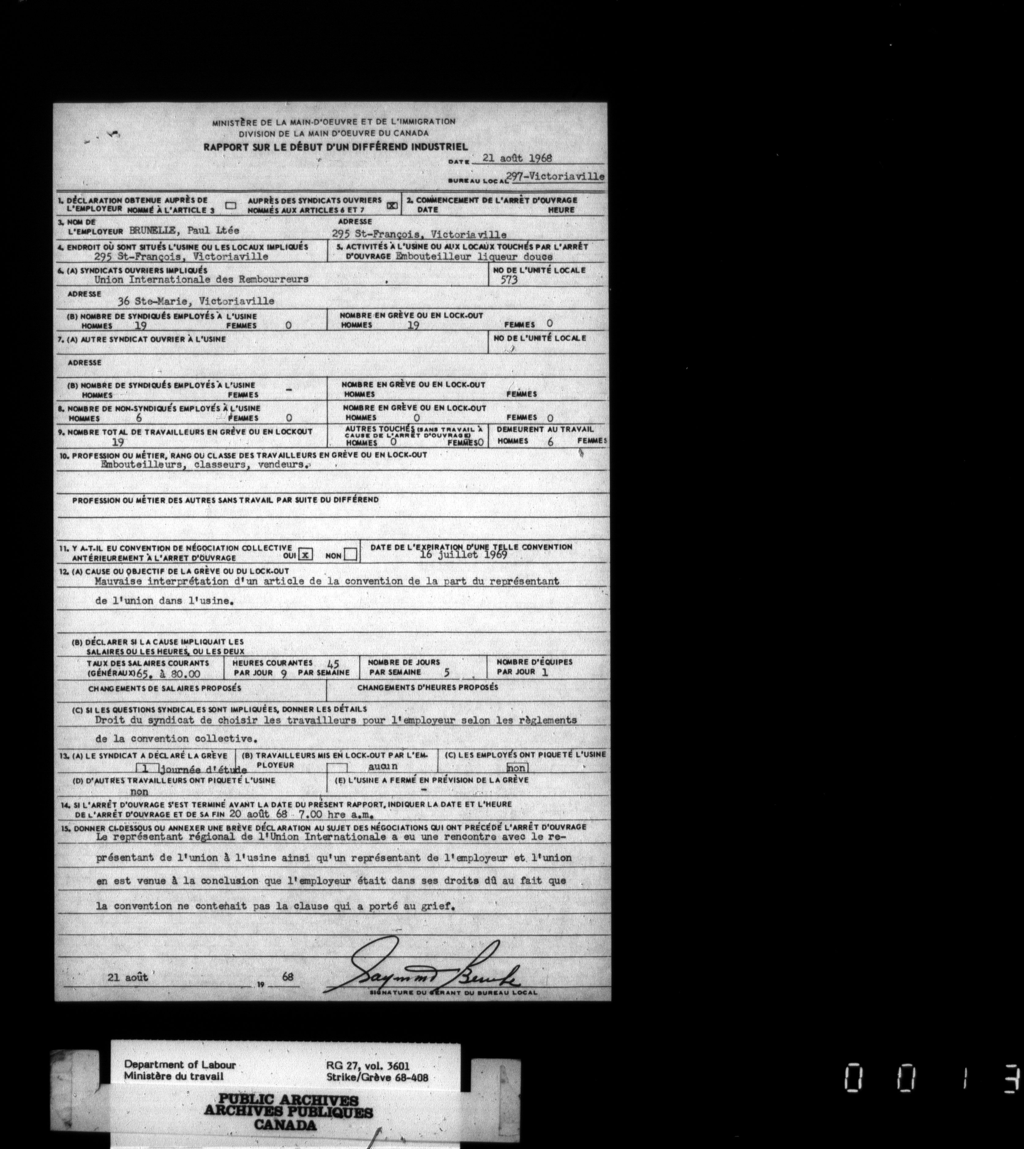 Department of Labour, Economics and Research Branch : Strikes and lockout files - 3444