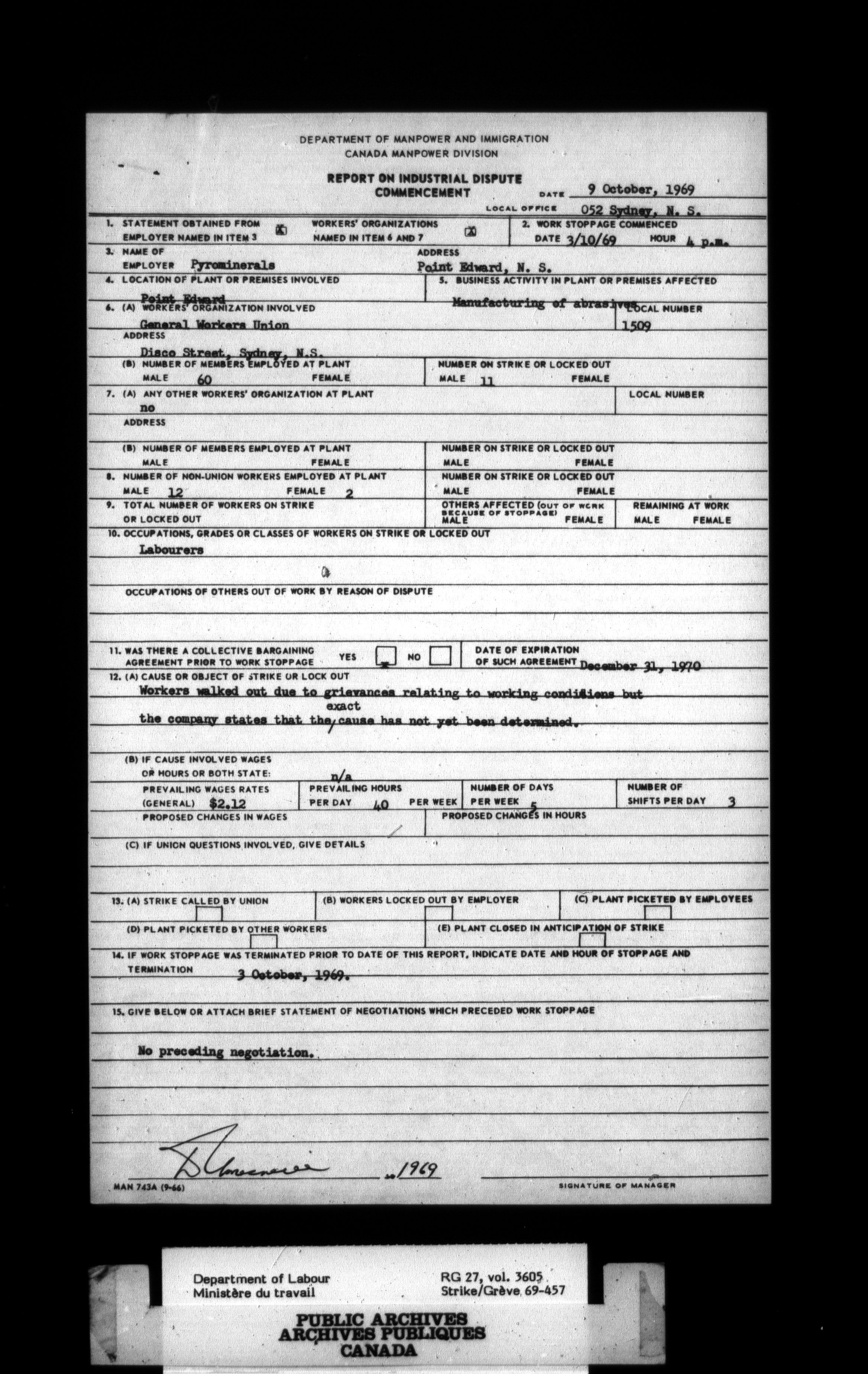 Department of Labour, Economics and Research Branch : Strikes and lockout files - 3447