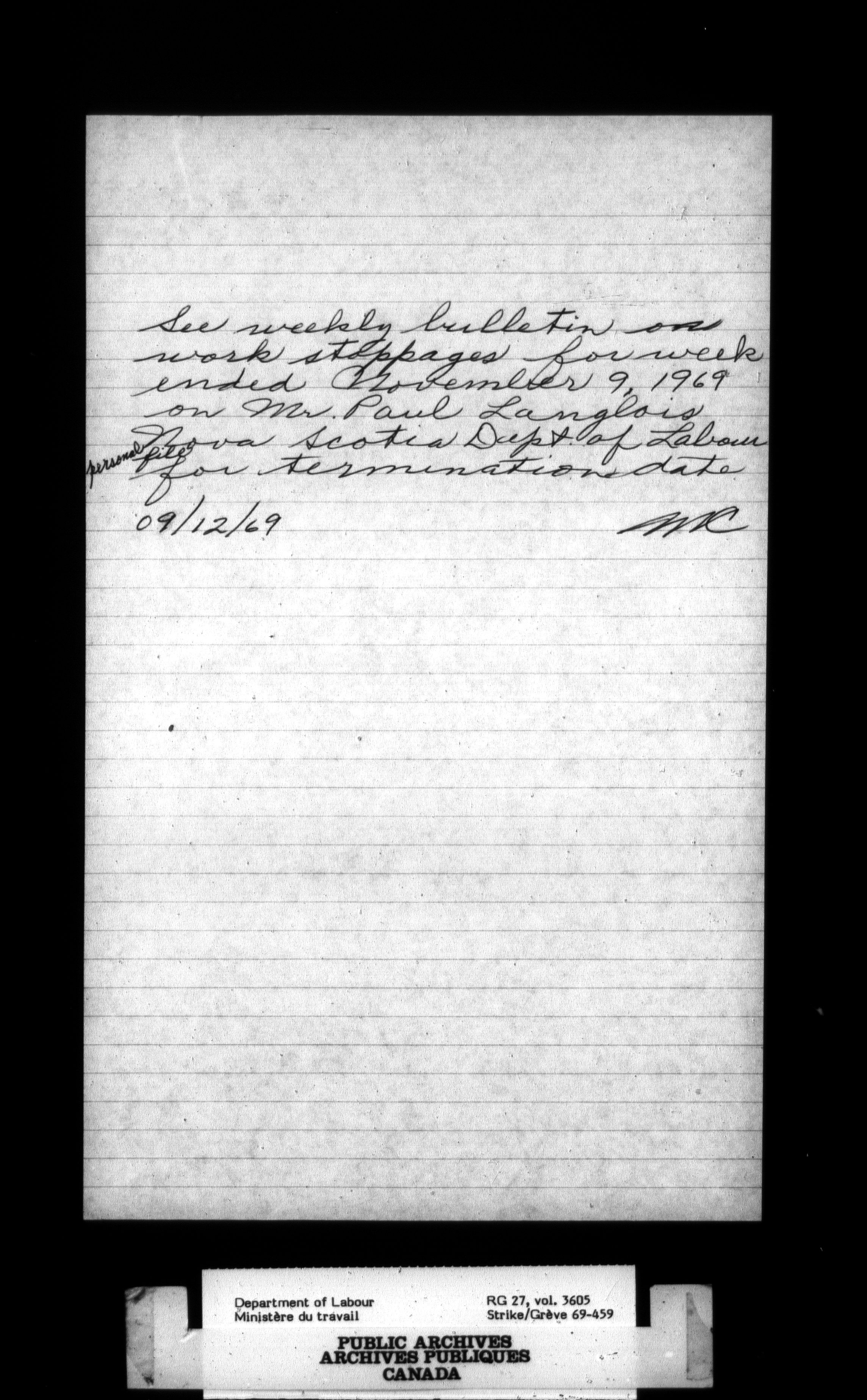 Department of Labour, Economics and Research Branch : Strikes and lockout files - 3447