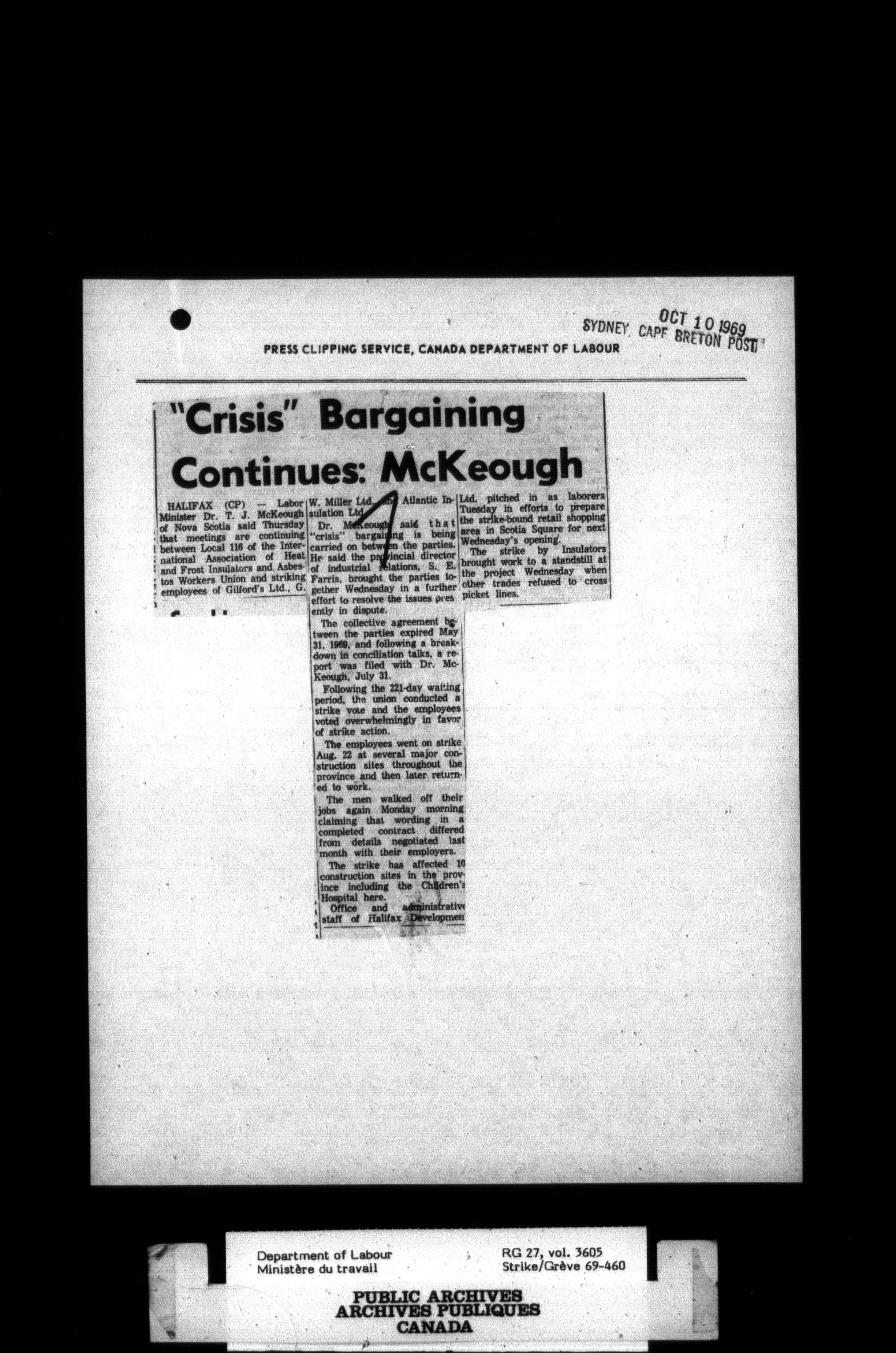 Department of Labour, Economics and Research Branch : Strikes and lockout files - 3447