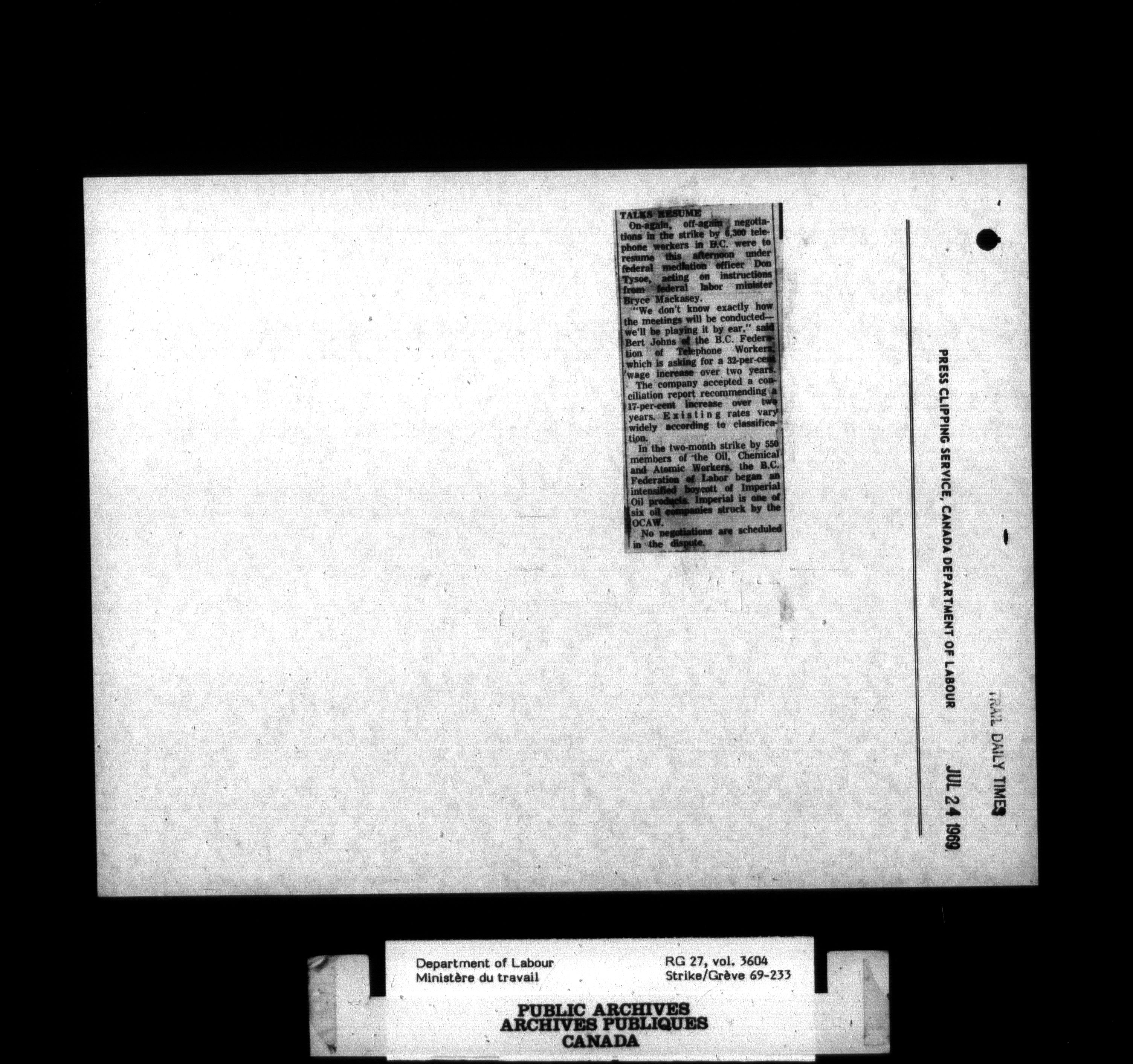 Department of Labour, Economics and Research Branch : Strikes and lockout files : T-3447