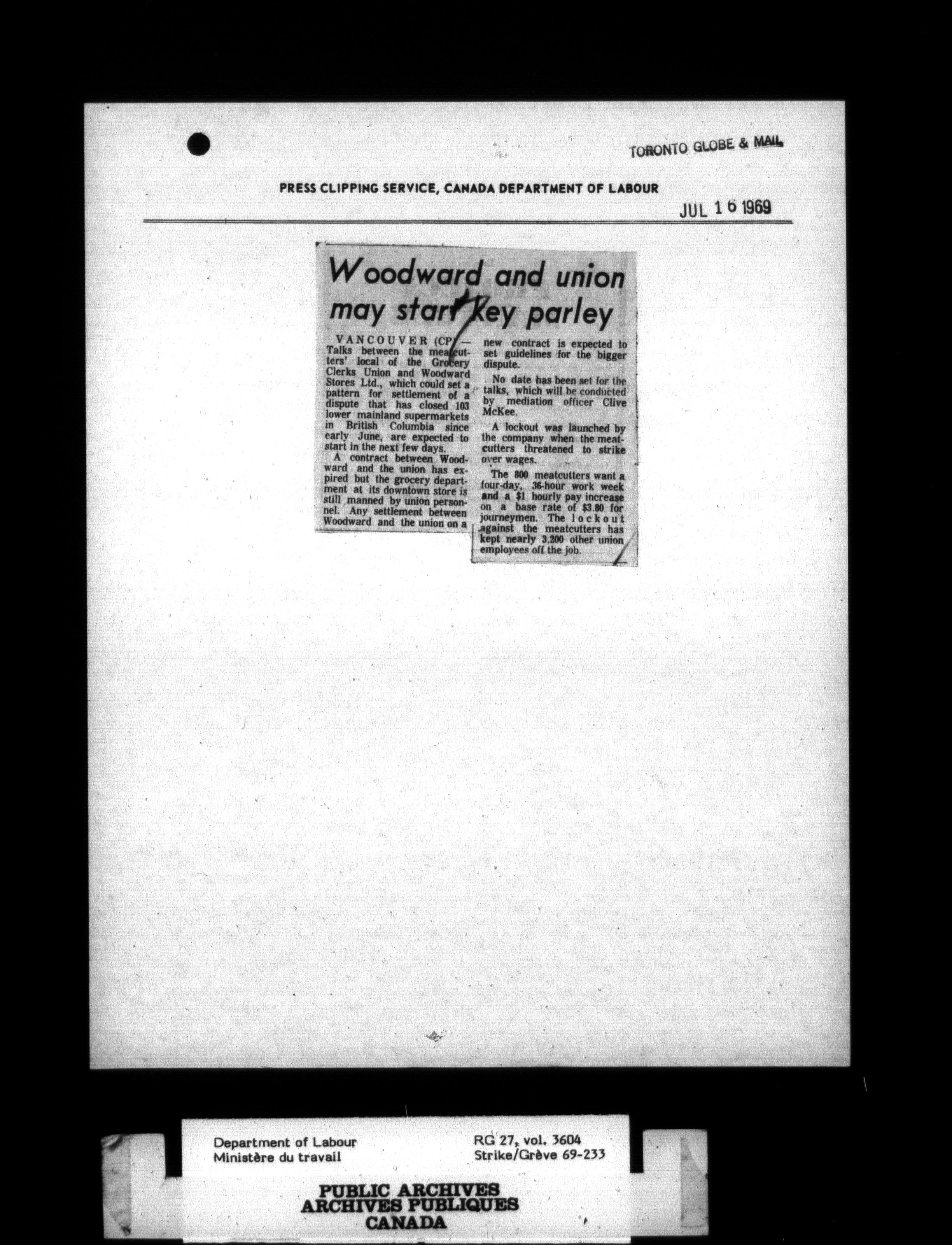 Department of Labour, Economics and Research Branch : Strikes and lockout files - 3447