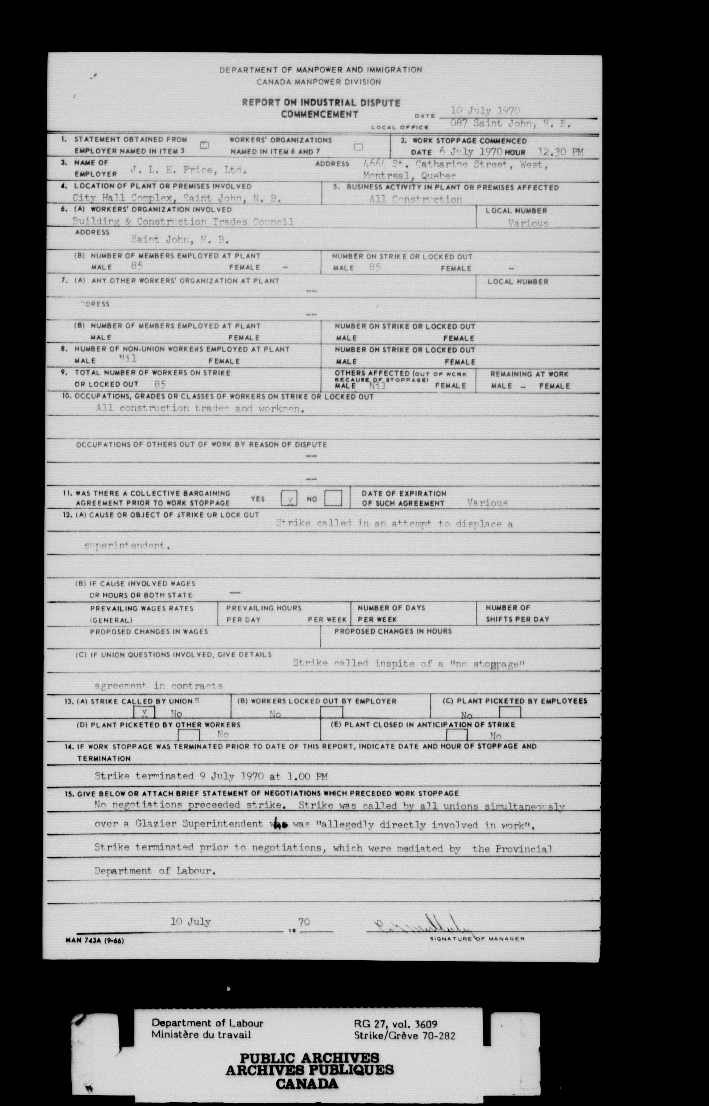 Department of Labour, Economics and Research Branch : Strikes and lockout files - 3449