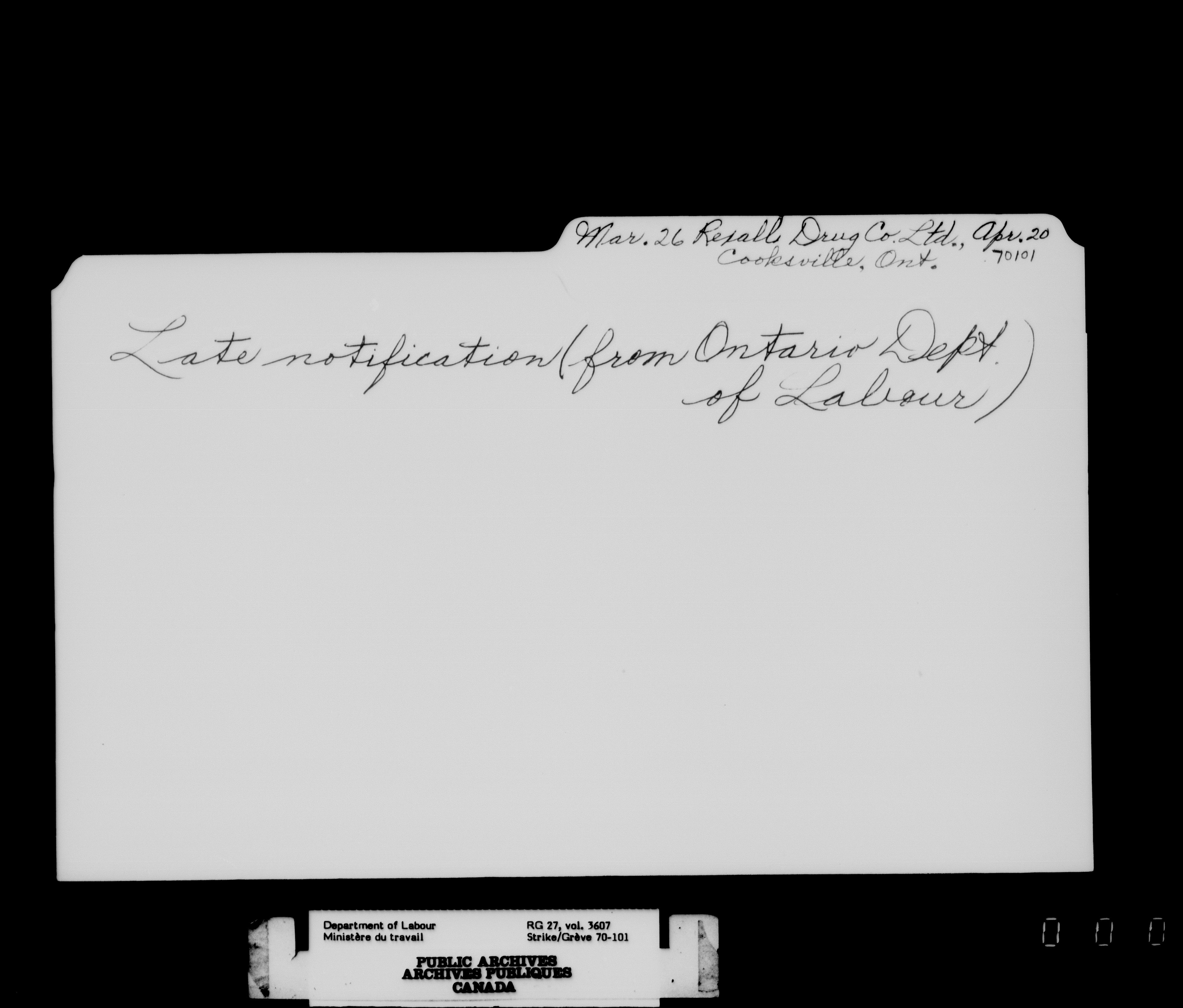 Department of Labour, Economics and Research Branch : Strikes and lockout files - 3449