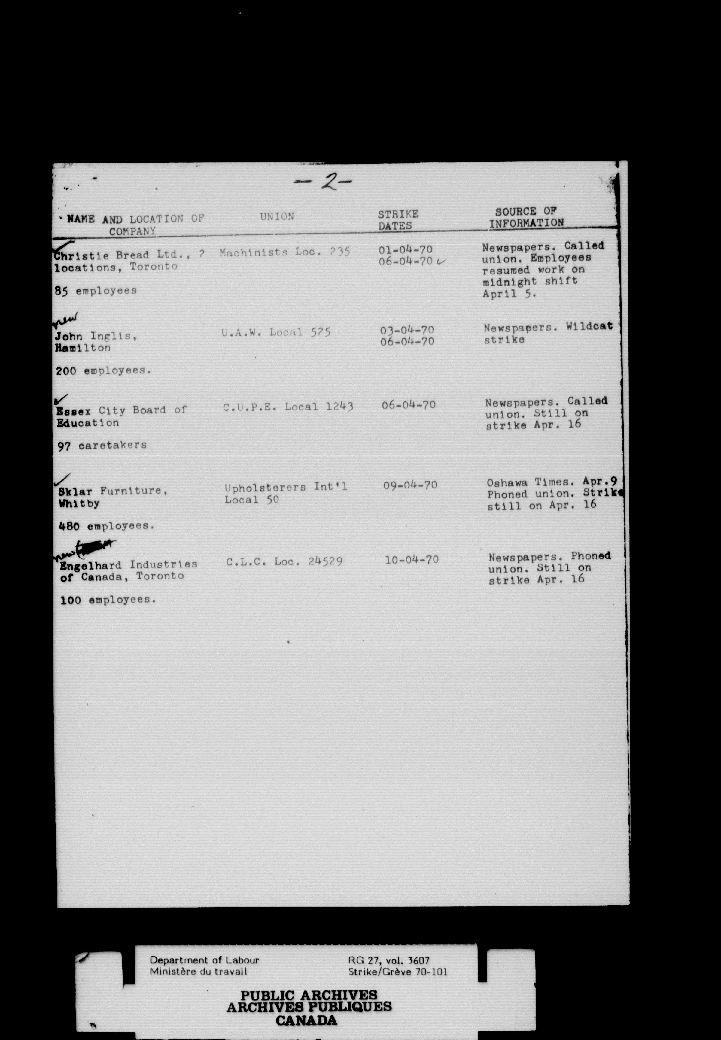 Department of Labour, Economics and Research Branch : Strikes and lockout files - 3449