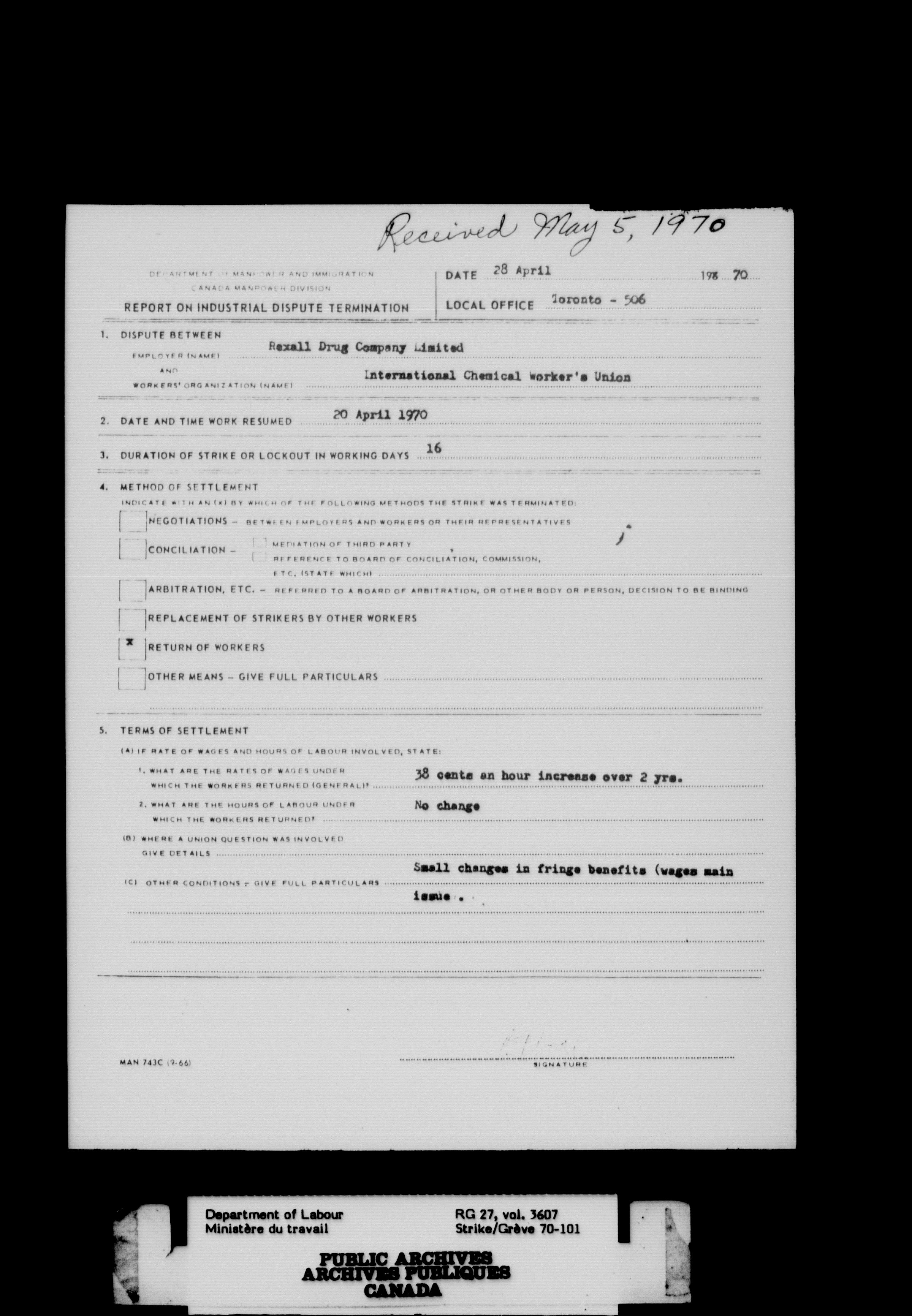 Department of Labour, Economics and Research Branch : Strikes and lockout files - 3449