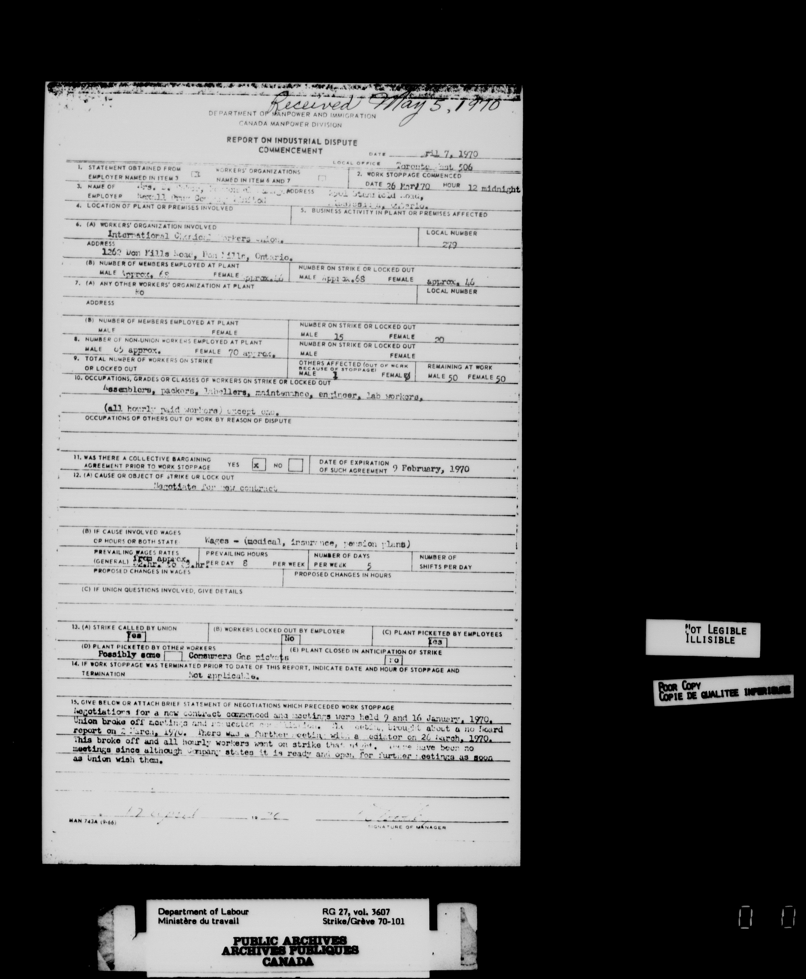 Department of Labour, Economics and Research Branch : Strikes and lockout files - 3449