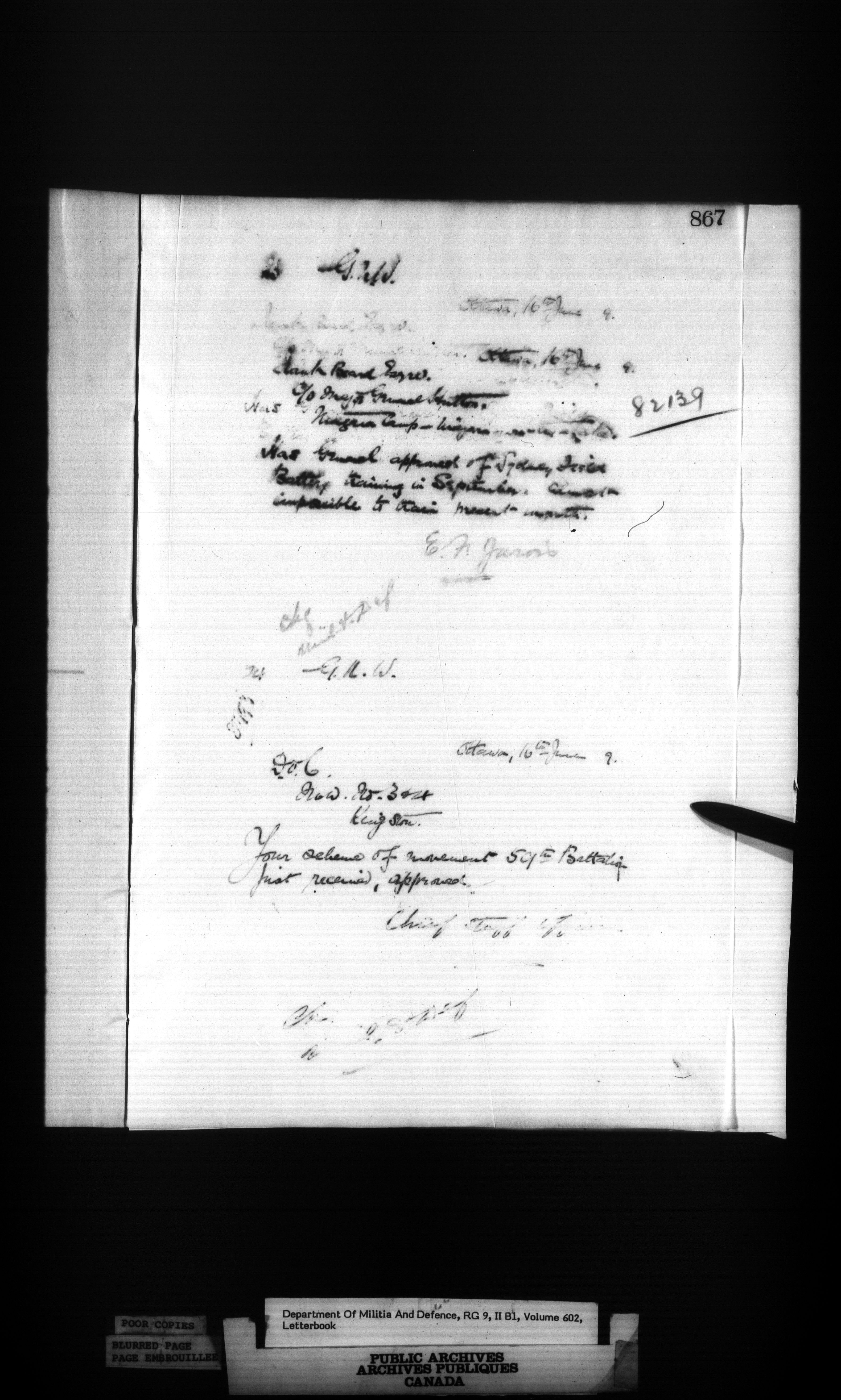 Correspondence of the General Officer Commanding (GOC) of the Canadian Militia and his predecessor, the Adjutant General - 345