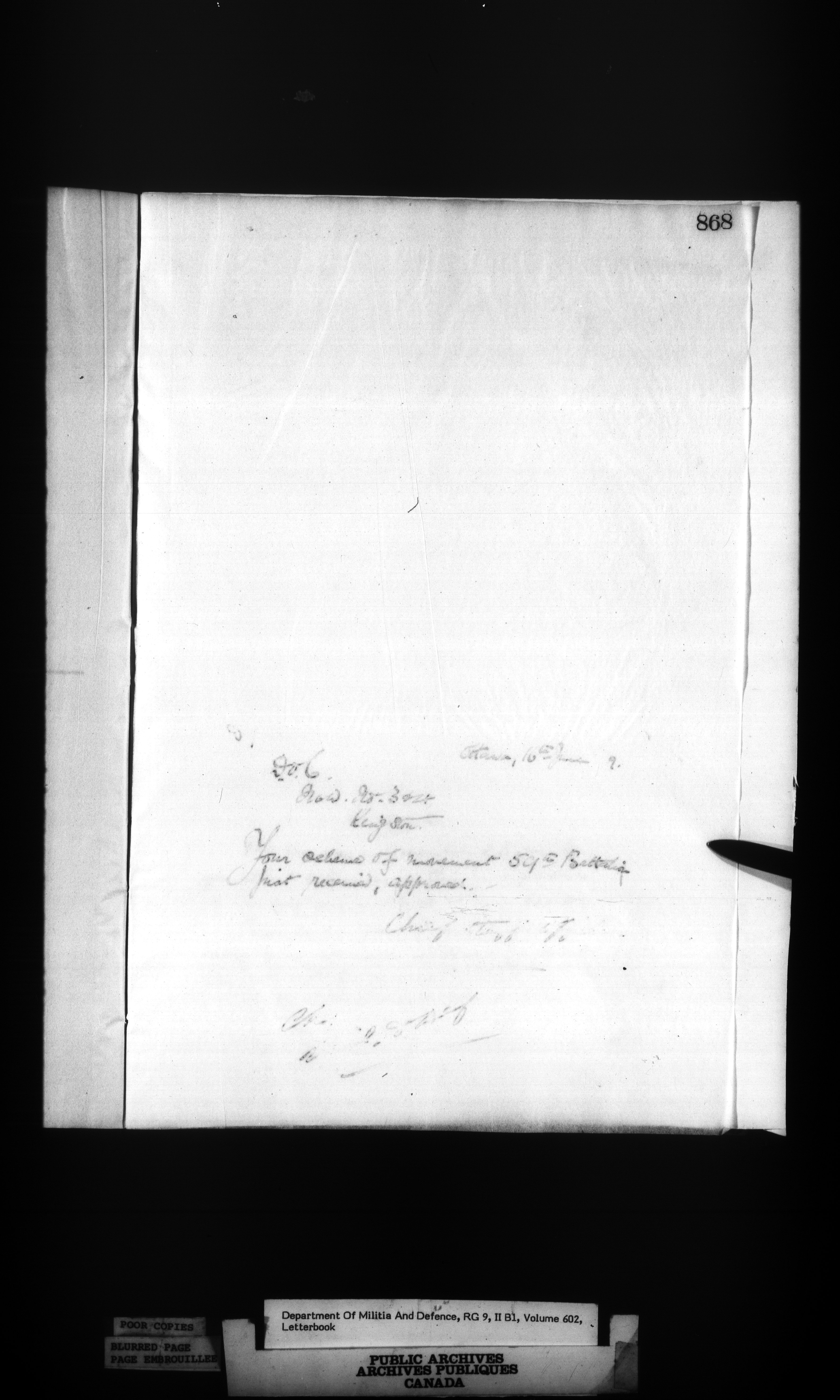Correspondence of the General Officer Commanding (GOC) of the Canadian Militia and his predecessor, the Adjutant General - 345