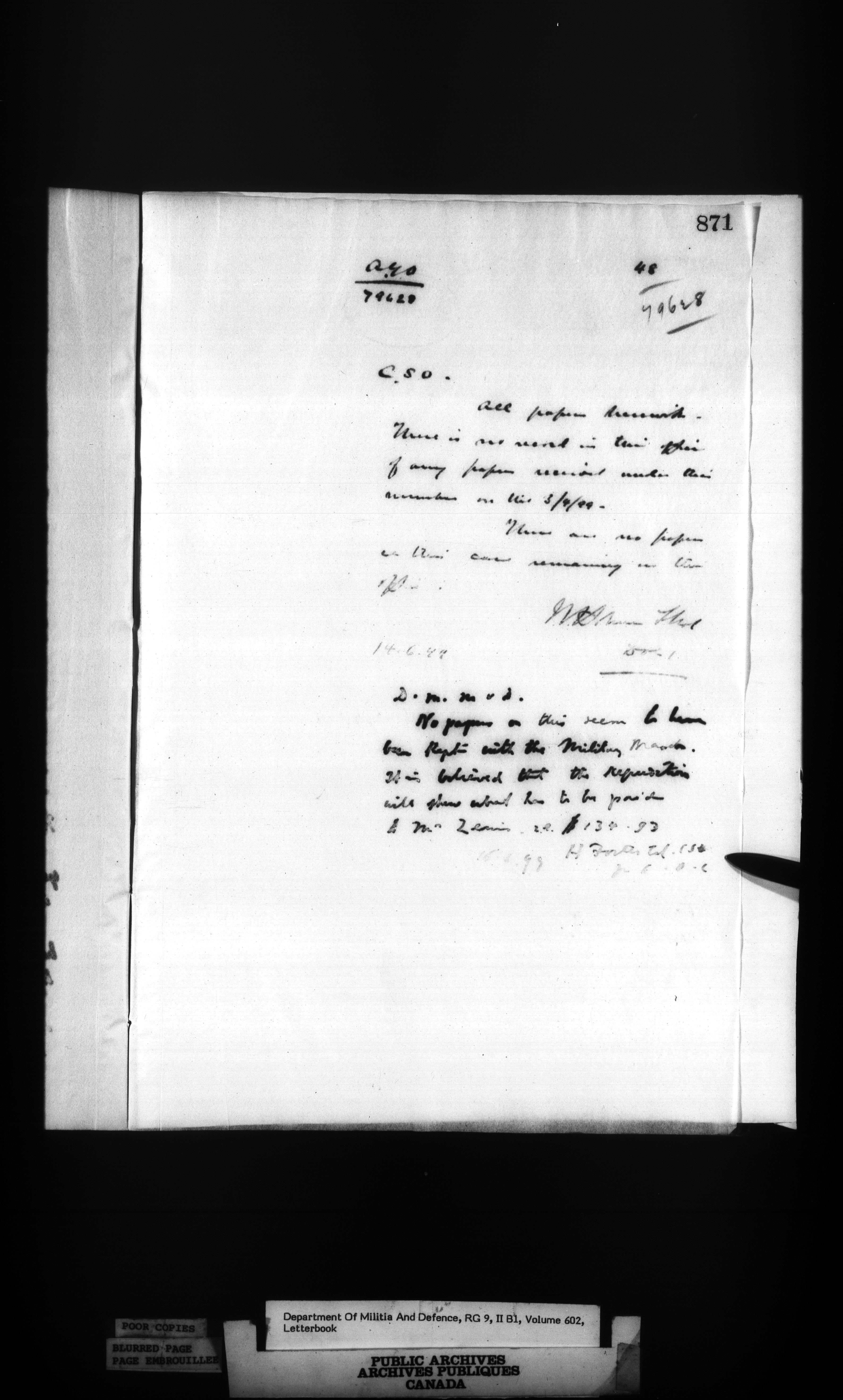Correspondence of the General Officer Commanding (GOC) of the Canadian Militia and his predecessor, the Adjutant General - 345