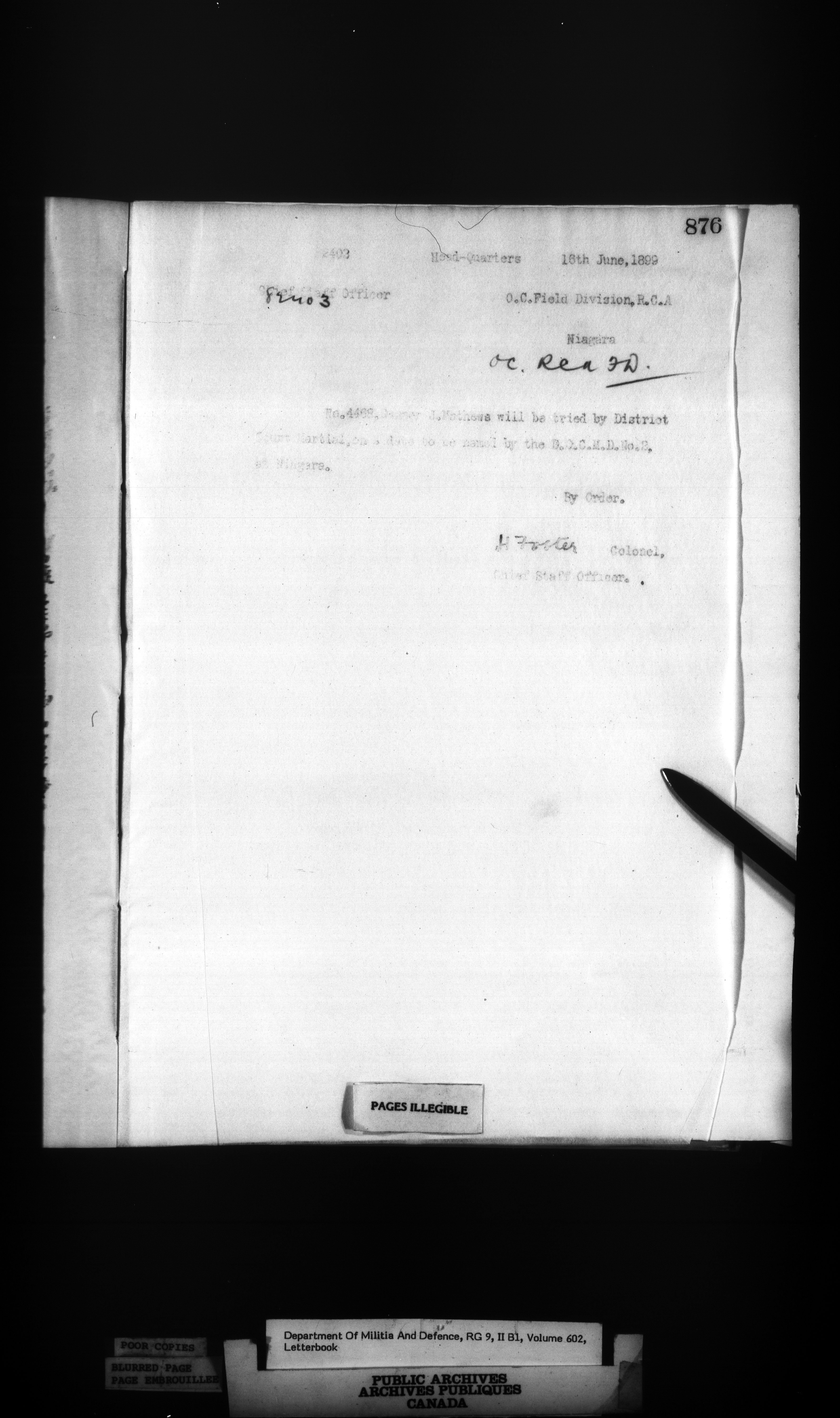 Correspondence of the General Officer Commanding (GOC) of the Canadian Militia and his predecessor, the Adjutant General - 345