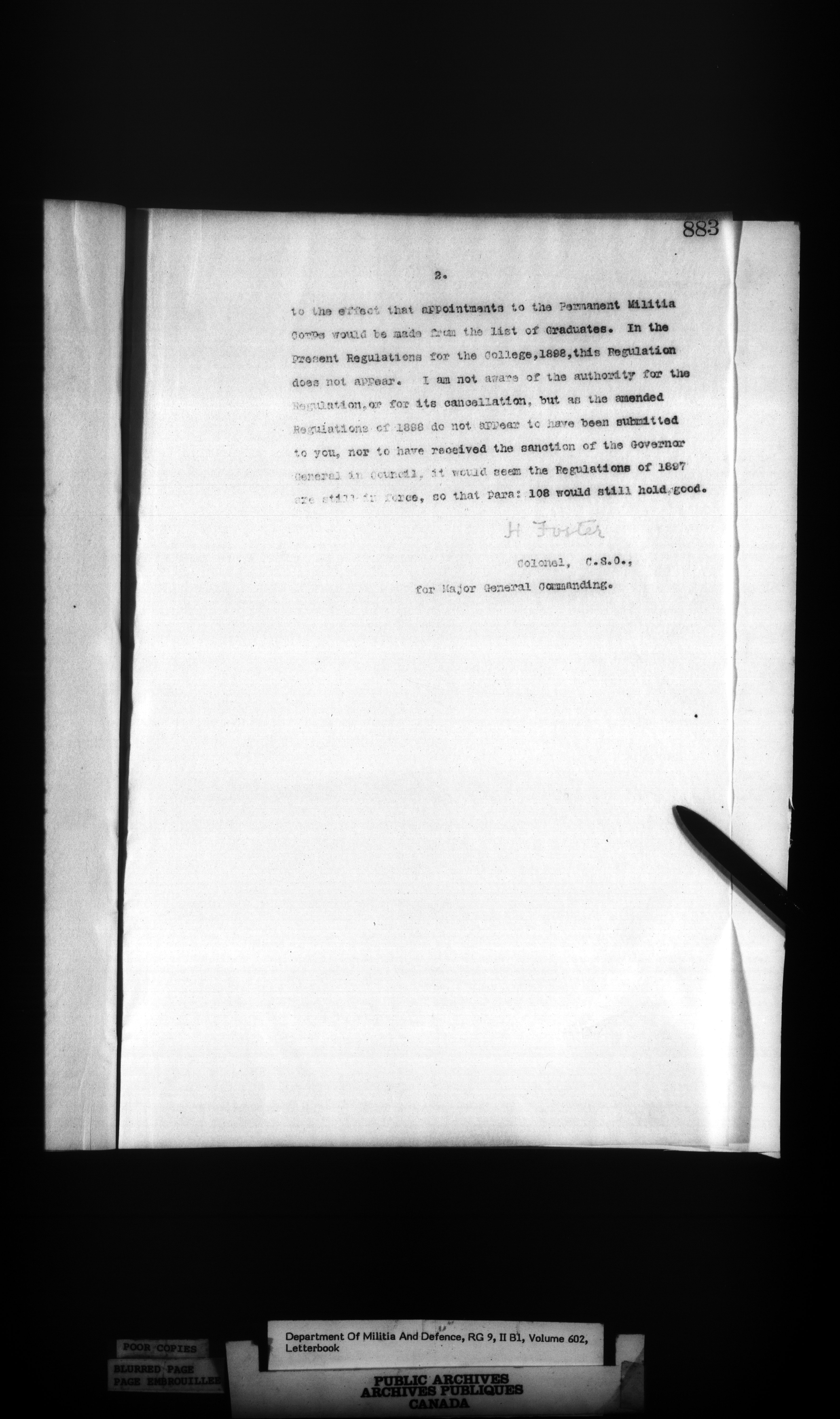 Correspondence of the General Officer Commanding (GOC) of the Canadian Militia and his predecessor, the Adjutant General - 345