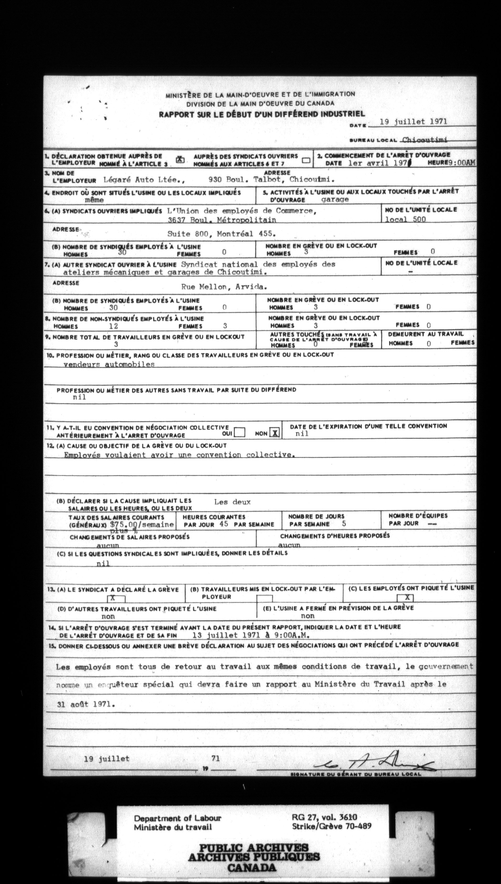 Department of Labour, Economics and Research Branch : Strikes and lockout files - 3451