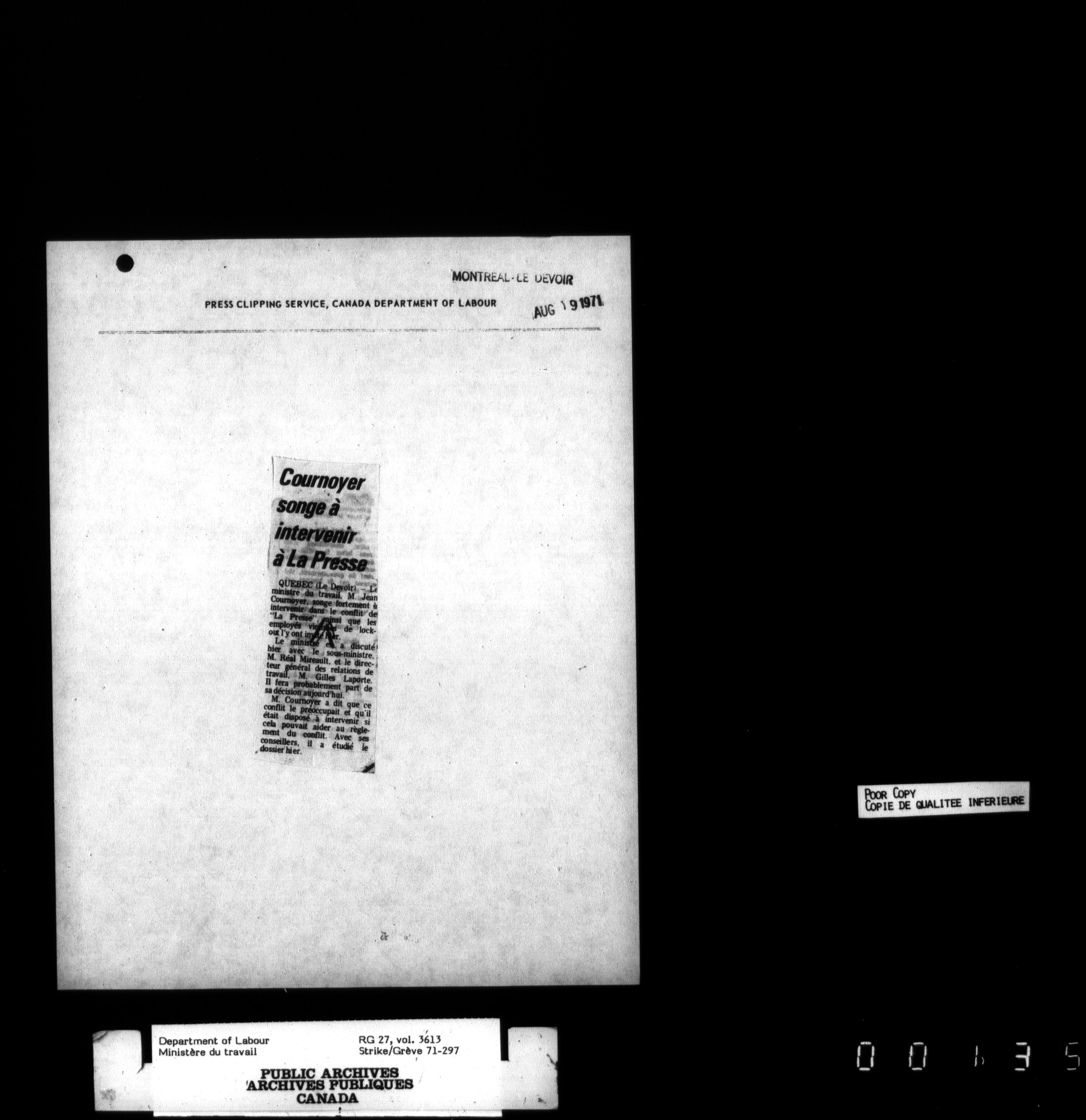 Department of Labour, Economics and Research Branch : Strikes and lockout files - 3452
