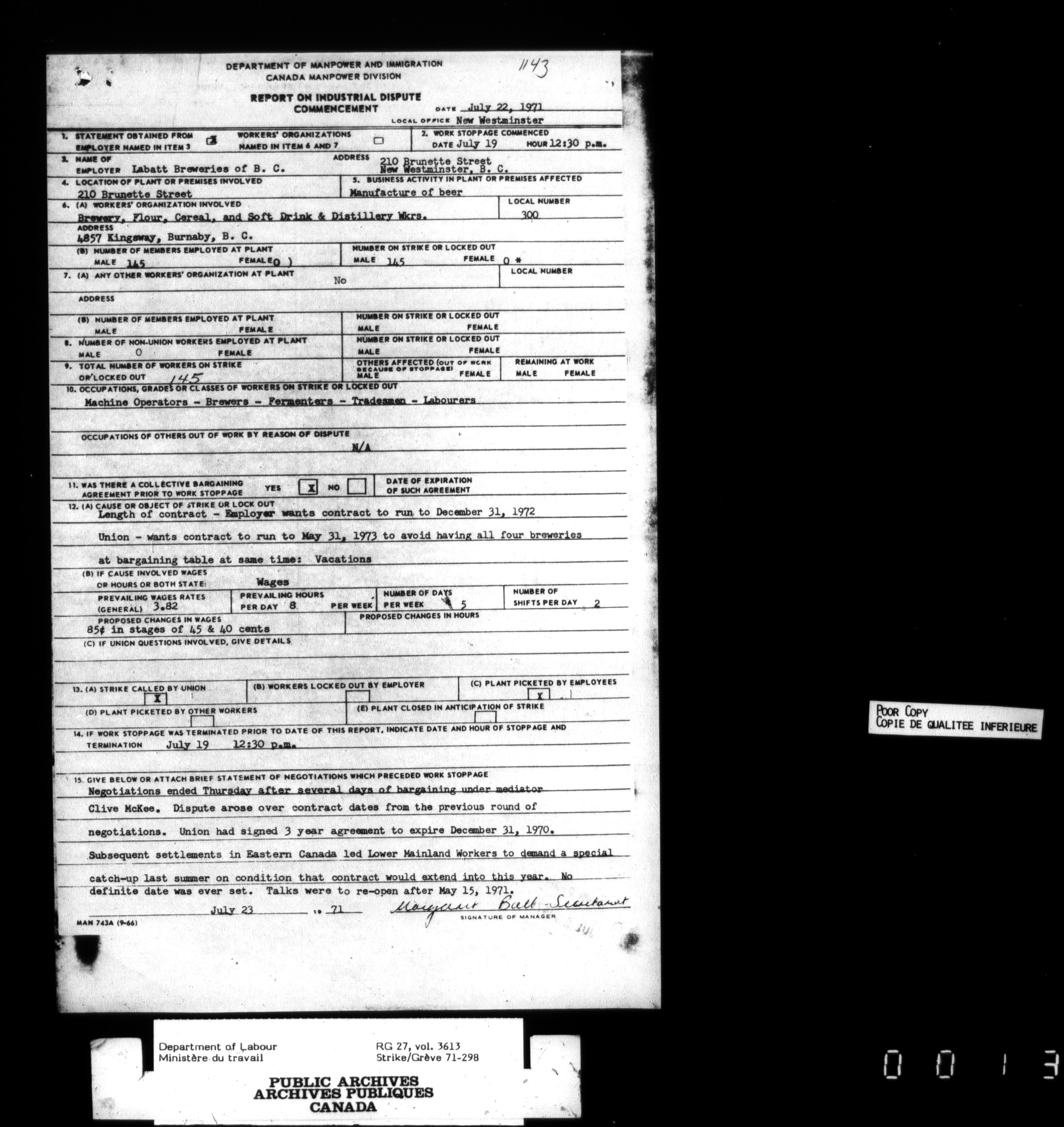 Department of Labour, Economics and Research Branch : Strikes and lockout files - 3452