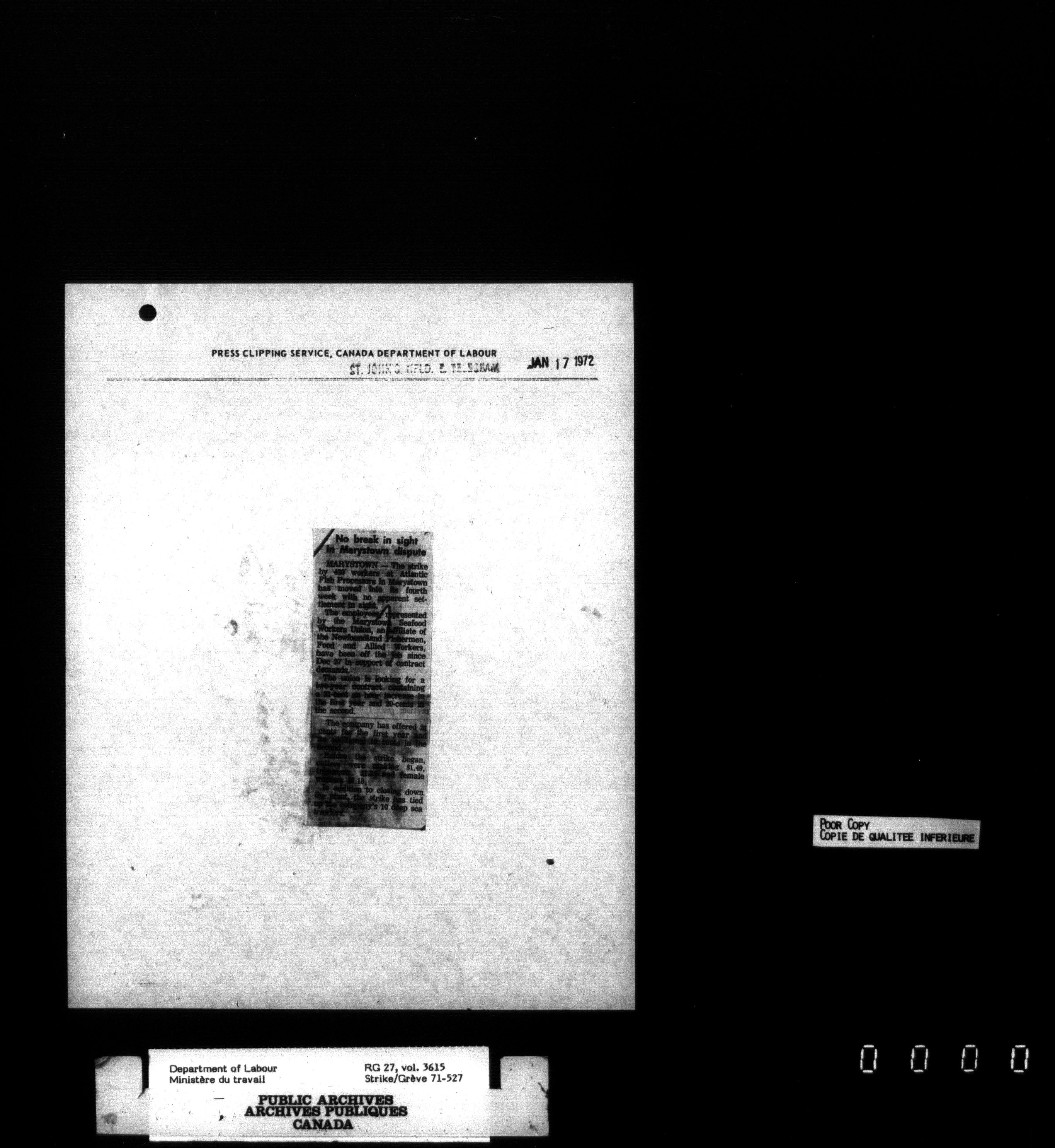 Department of Labour, Economics and Research Branch : Strikes and lockout files - 3454