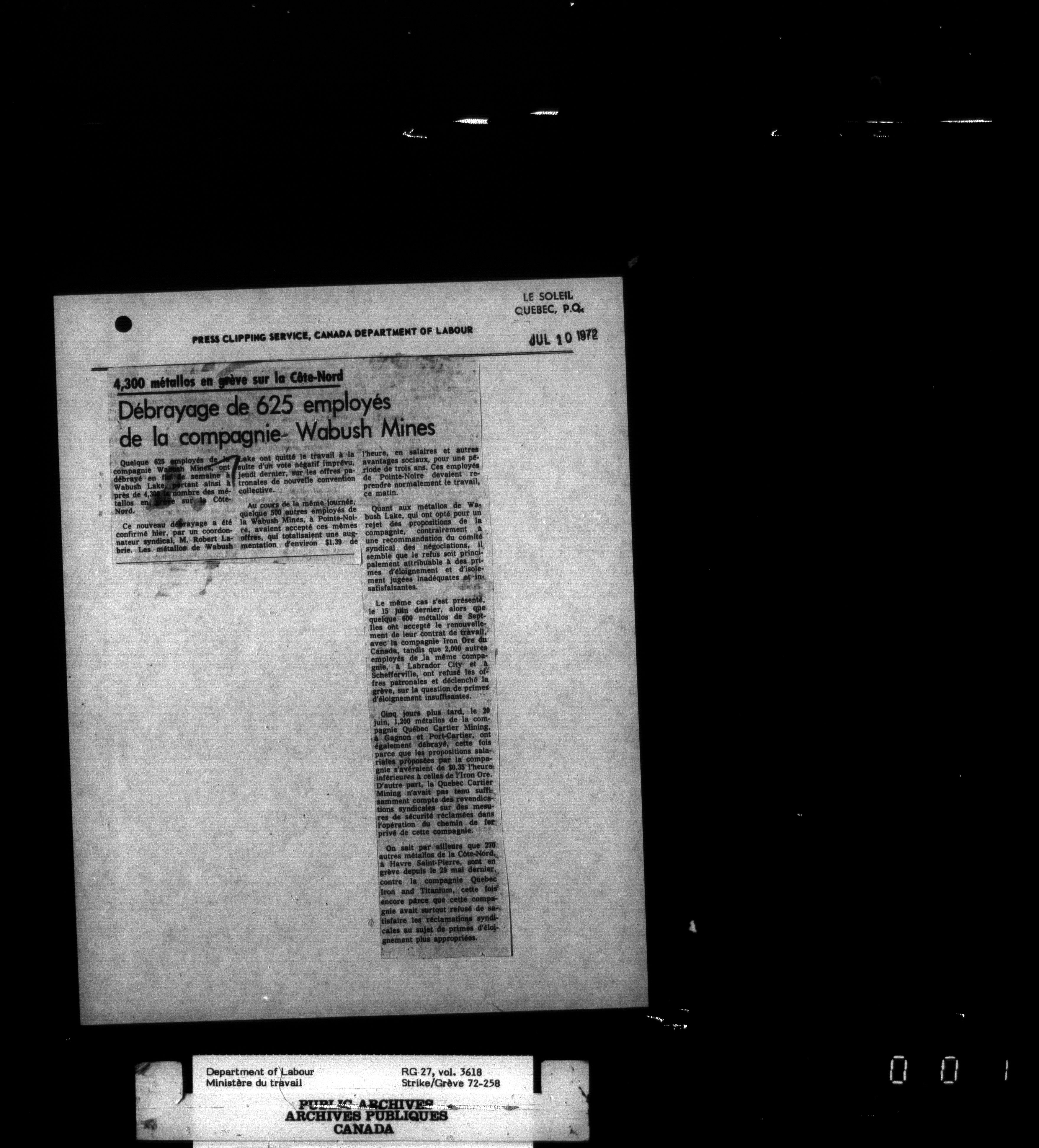 Department of Labour, Economics and Research Branch : Strikes and lockout files : T-3455