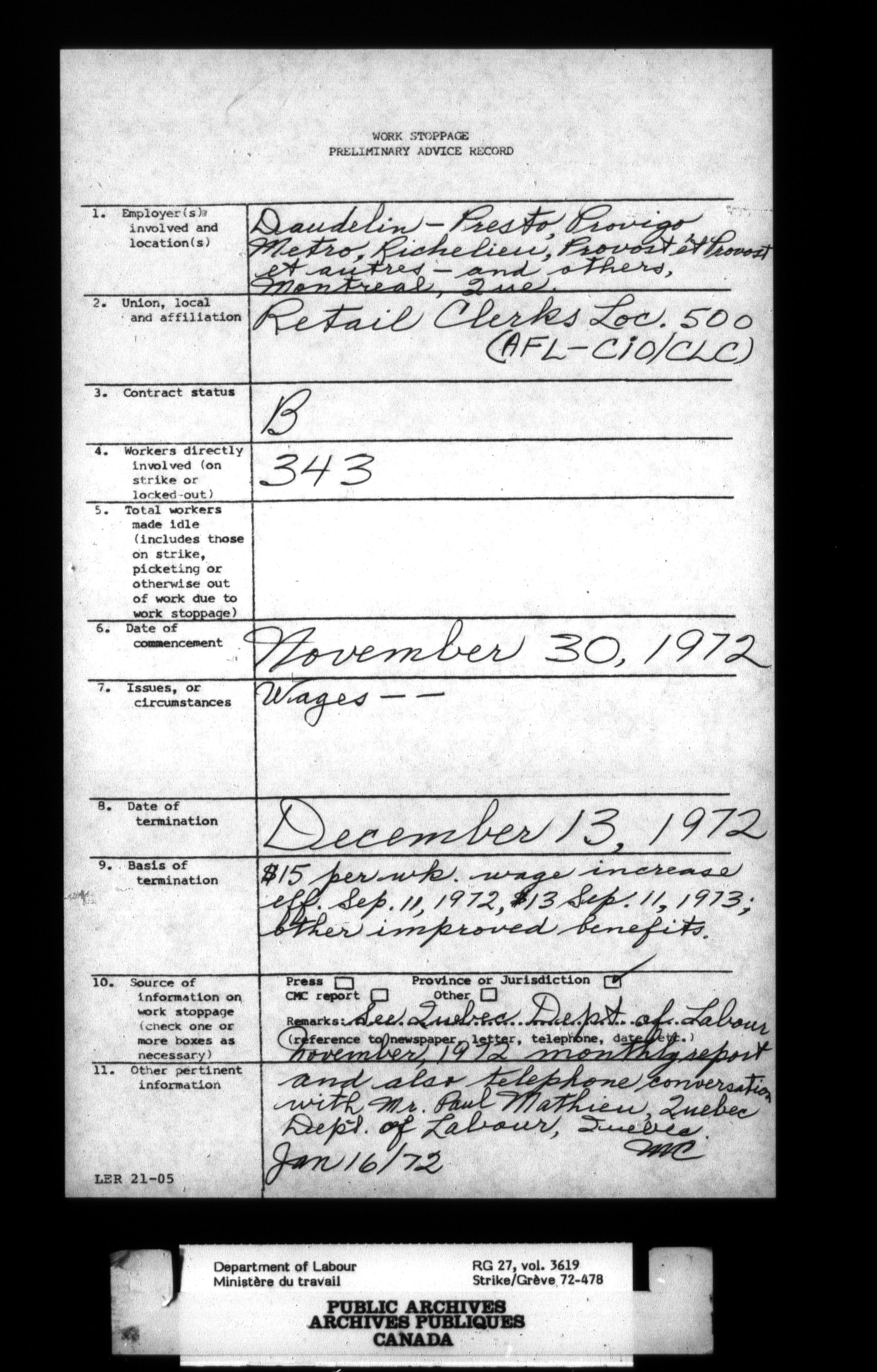 Department of Labour, Economics and Research Branch : Strikes and lockout files - 3456