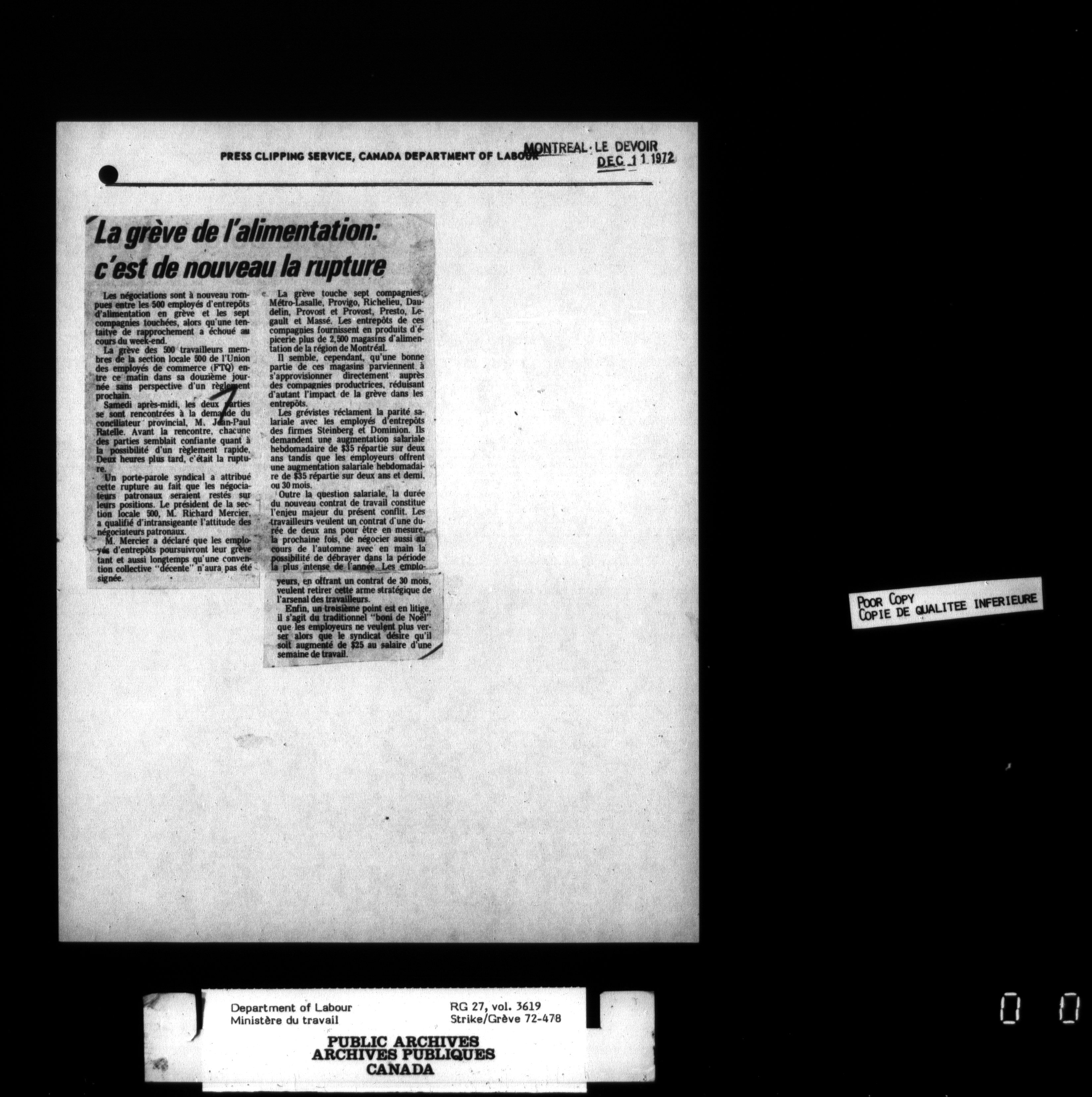 Department of Labour, Economics and Research Branch : Strikes and lockout files : T-3456