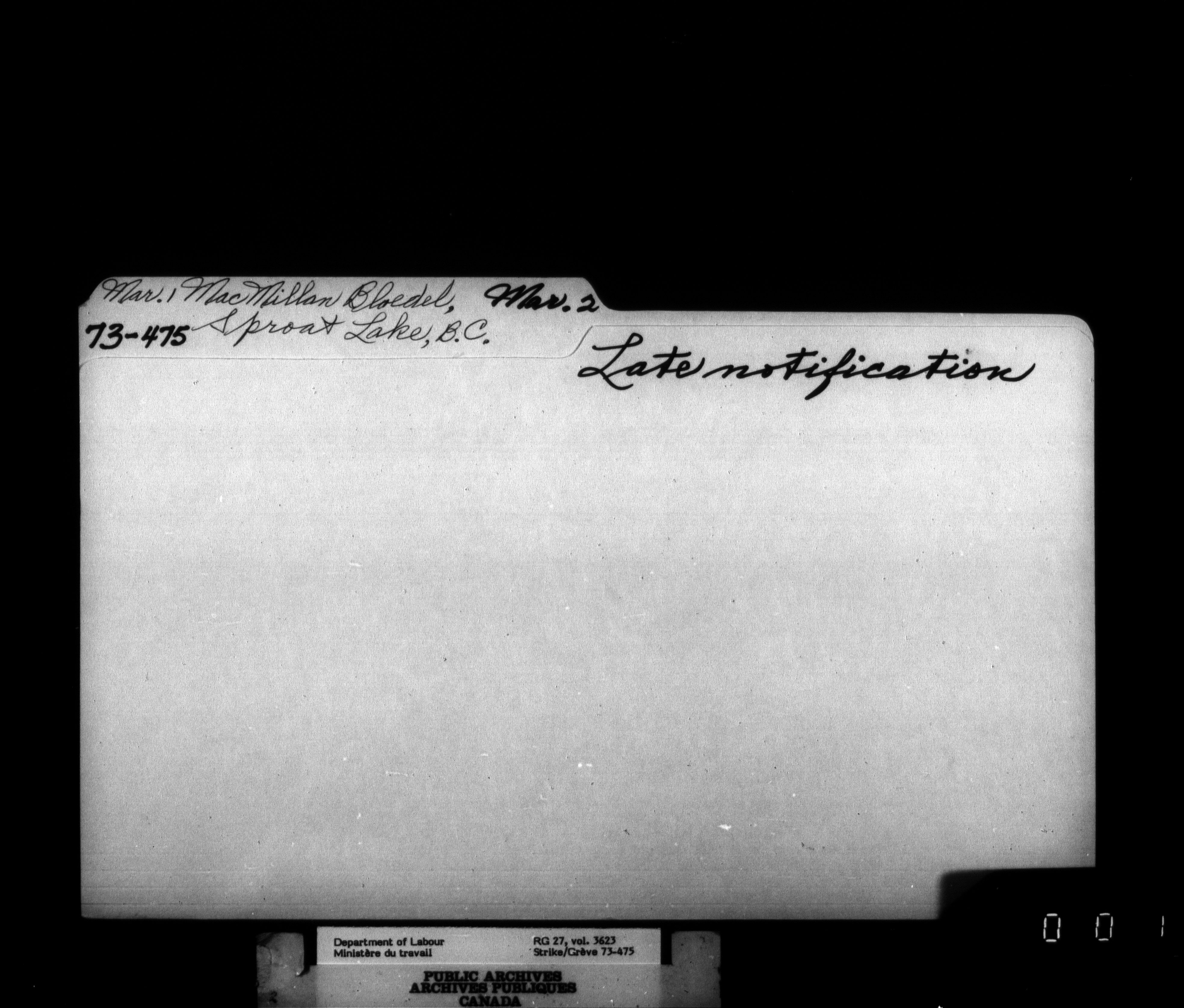 Department of Labour, Economics and Research Branch : Strikes and lockout files - 3458