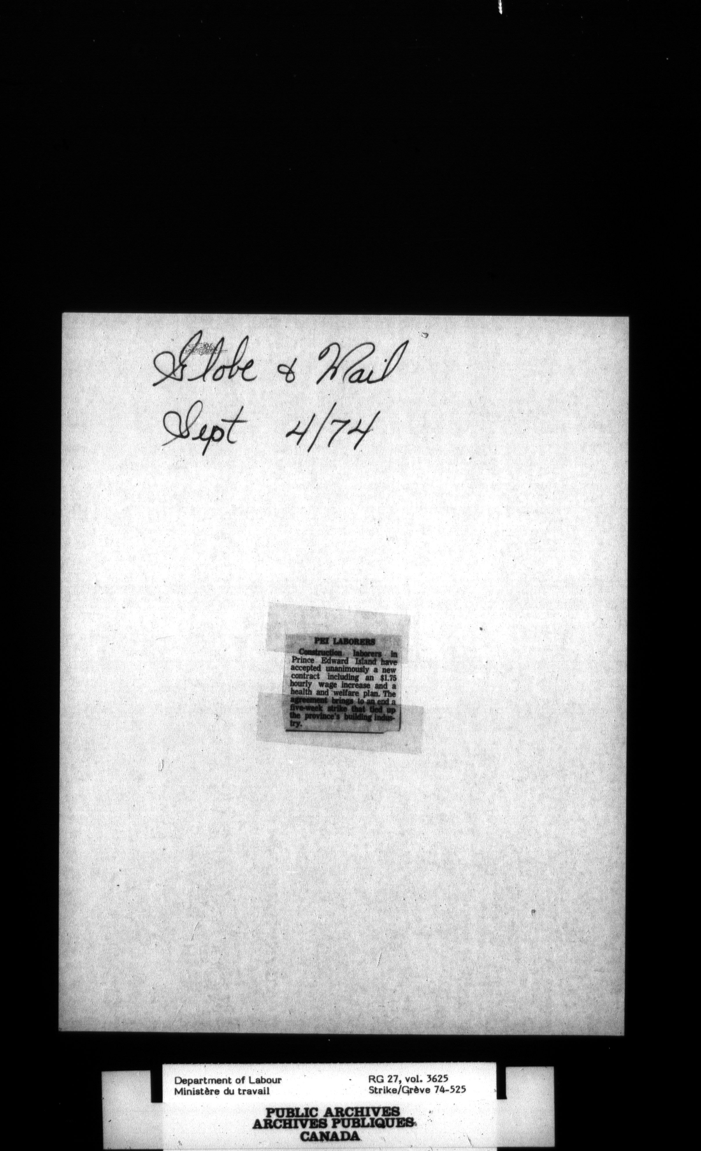 Department of Labour, Economics and Research Branch : Strikes and lockout files : T-3459