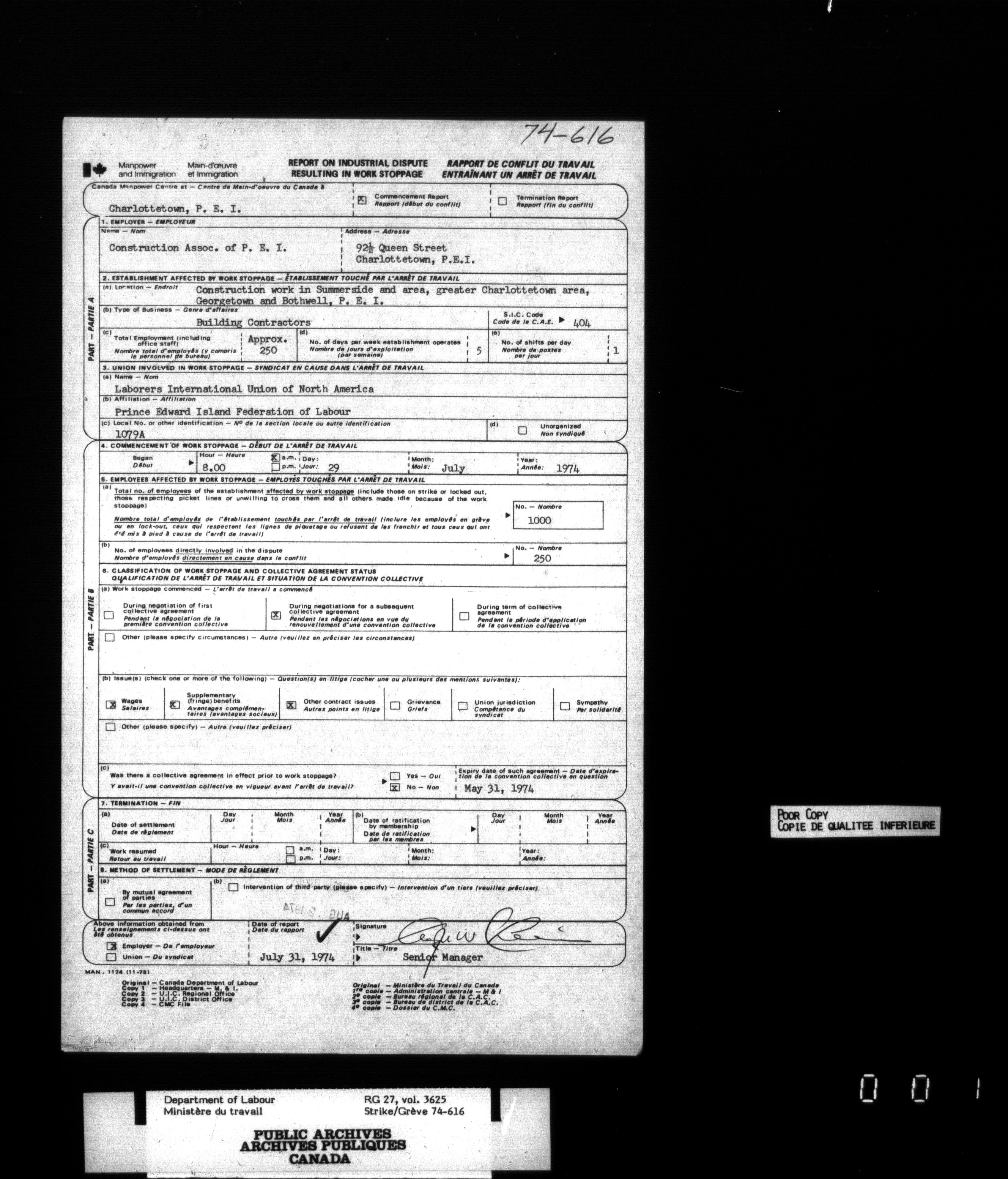 Department of Labour, Economics and Research Branch : Strikes and lockout files : T-3459