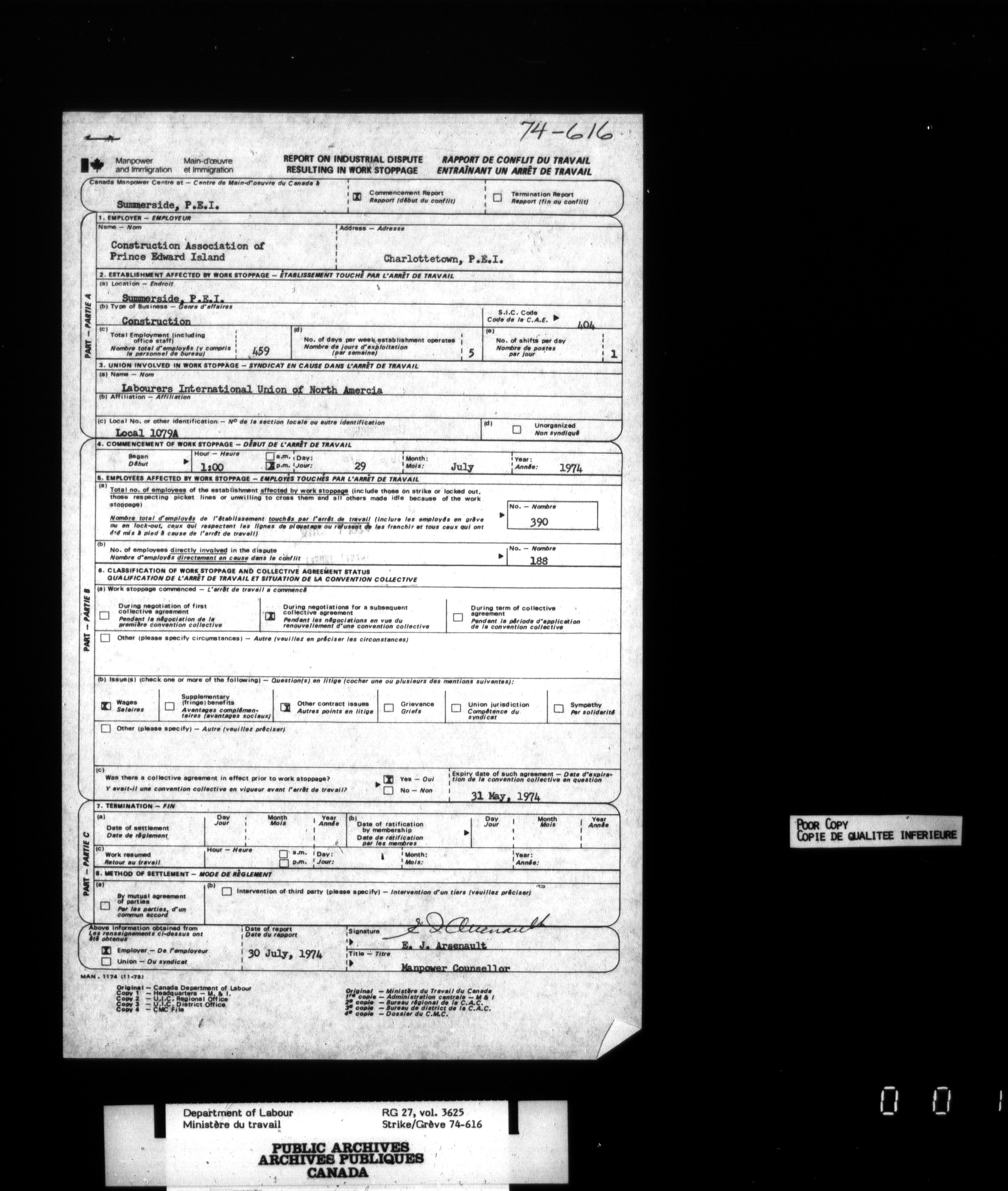 Department of Labour, Economics and Research Branch : Strikes and lockout files - 3459