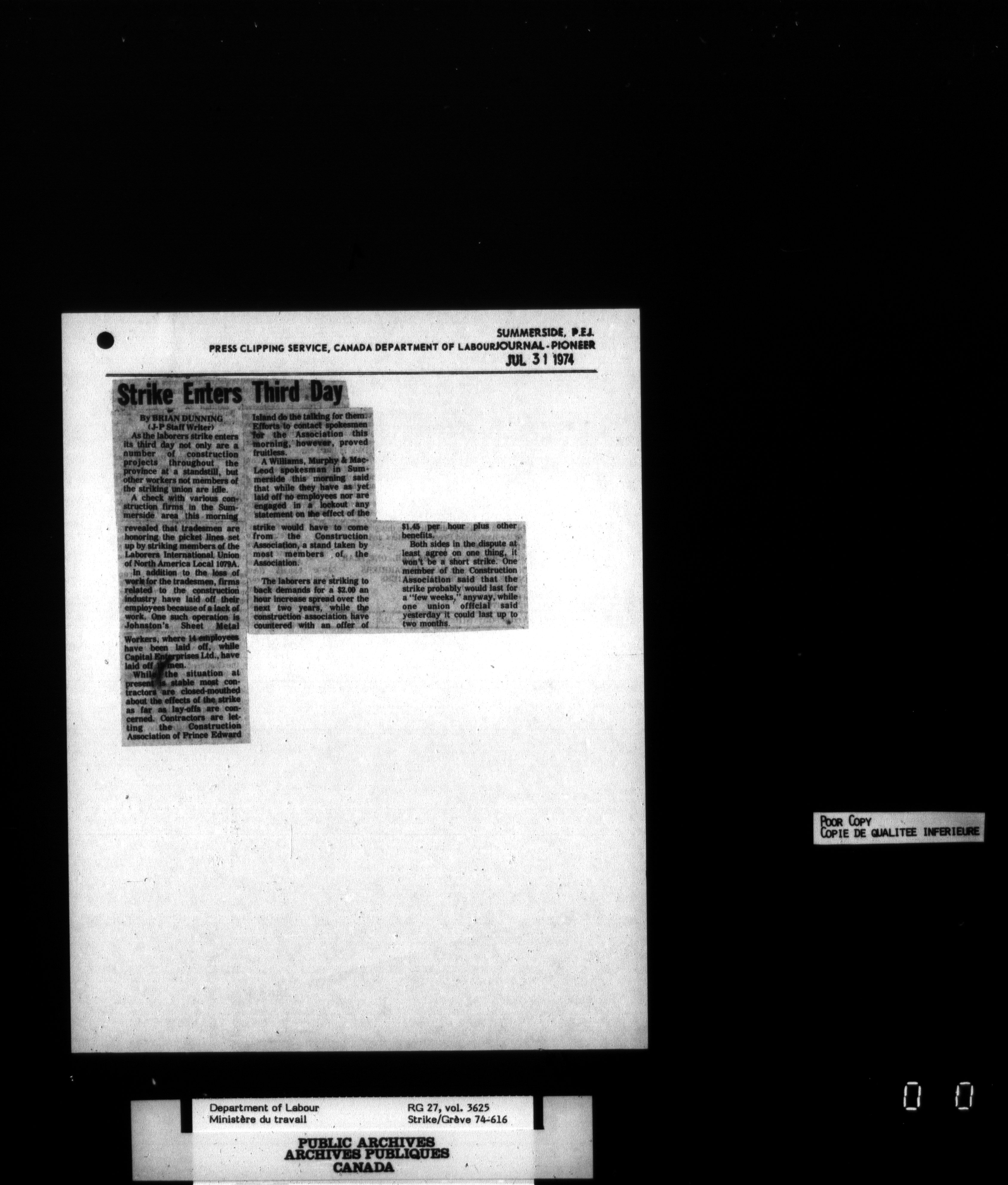 Department of Labour, Economics and Research Branch : Strikes and lockout files - 3459
