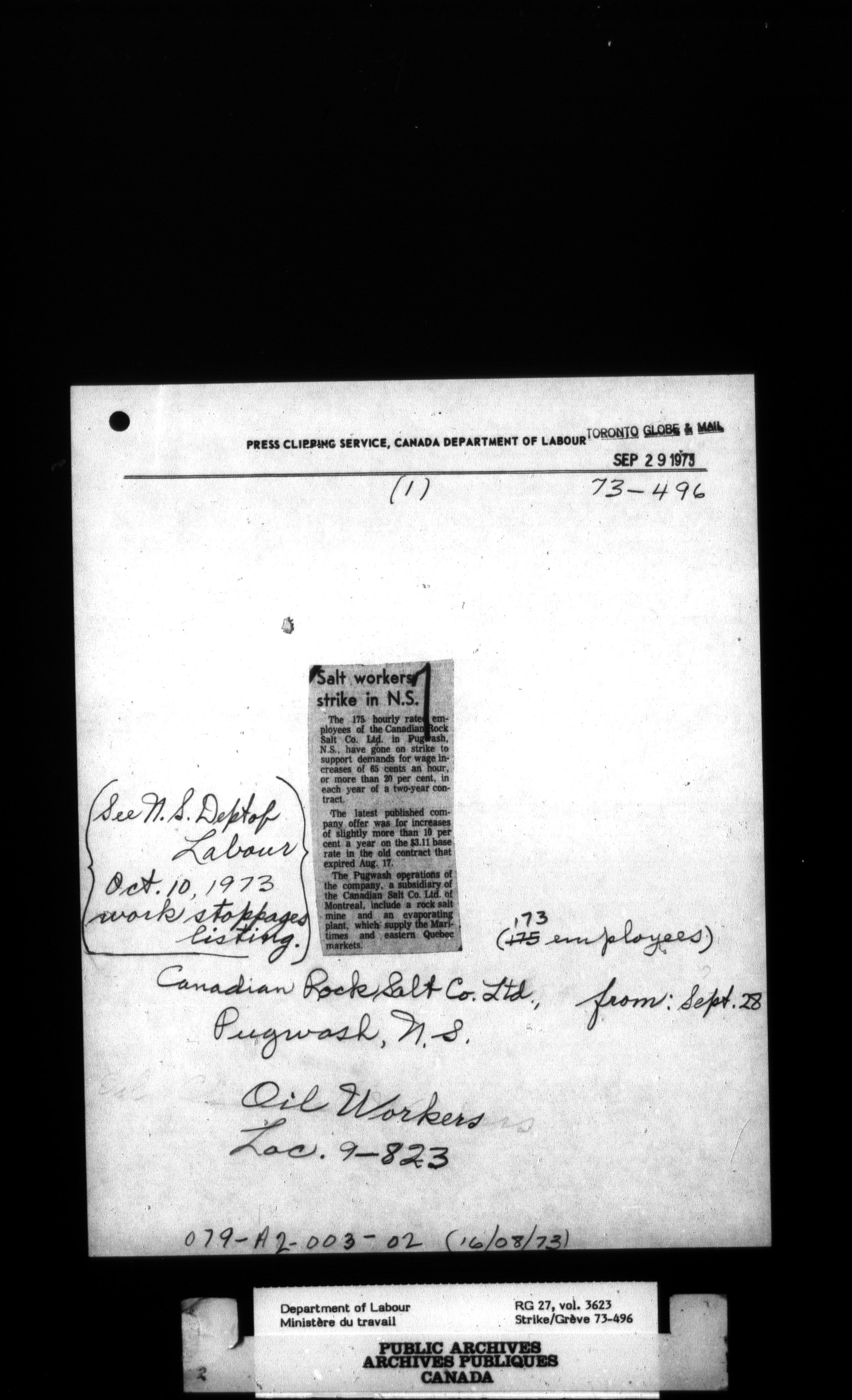 Department of Labour, Economics and Research Branch : Strikes and lockout files - 3459